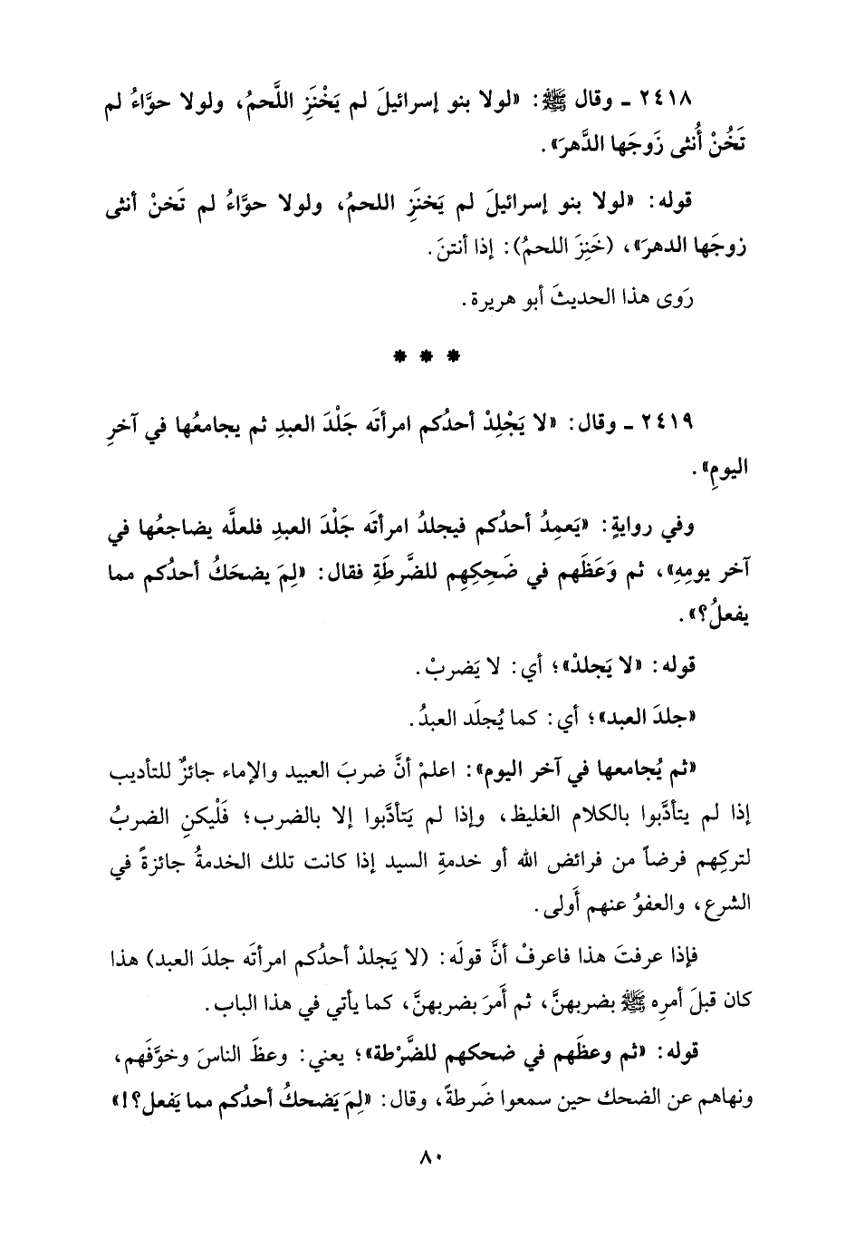 2419 - وقال: "لا يَجْلِدْ أحدُكم امرأتَه جَلْدَ العبدِ ثم يجامعُها في آخرِ اليومِ".
