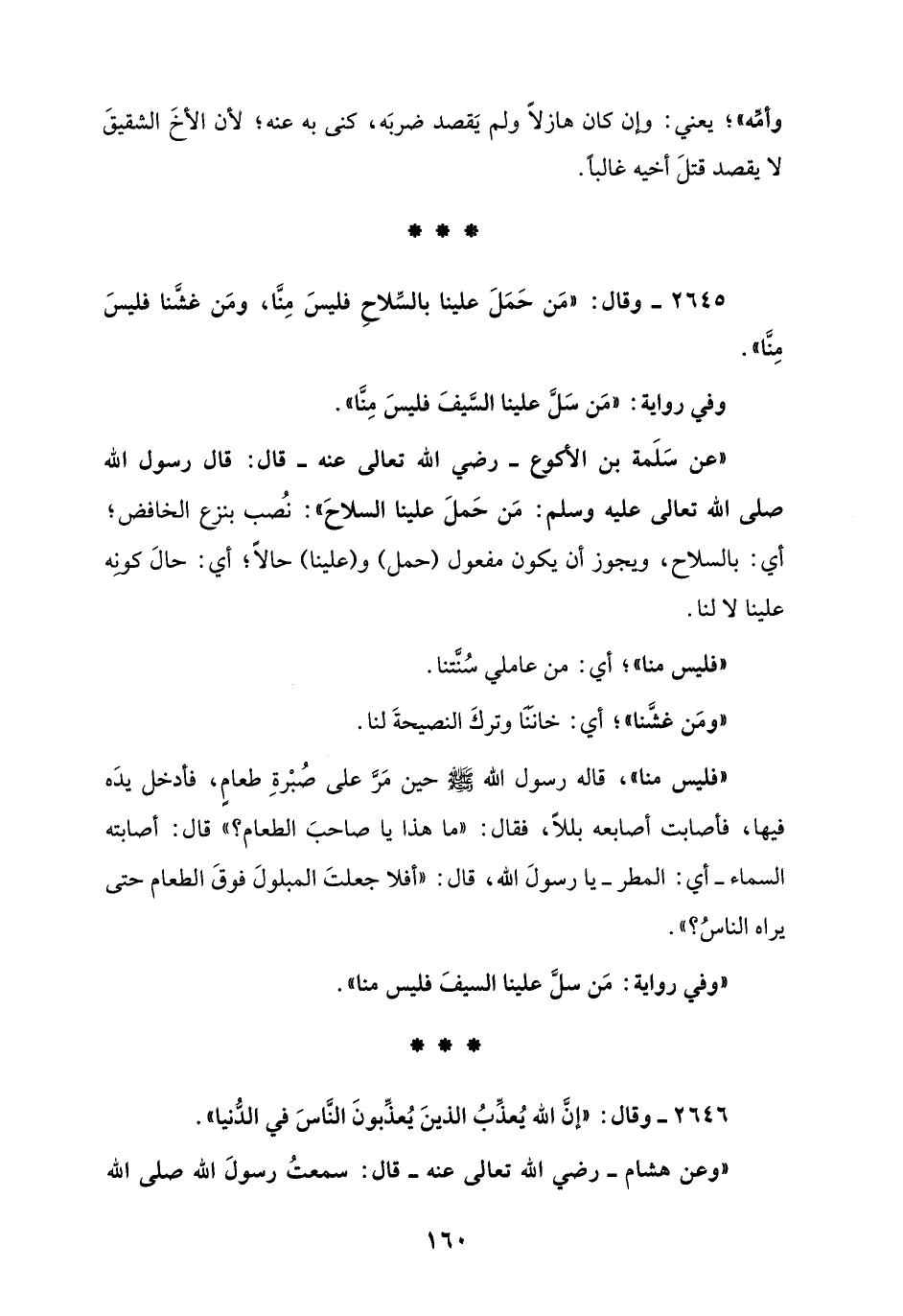 "وفي رواية: مَن سلَّ علينا السيفَ فليس منا".