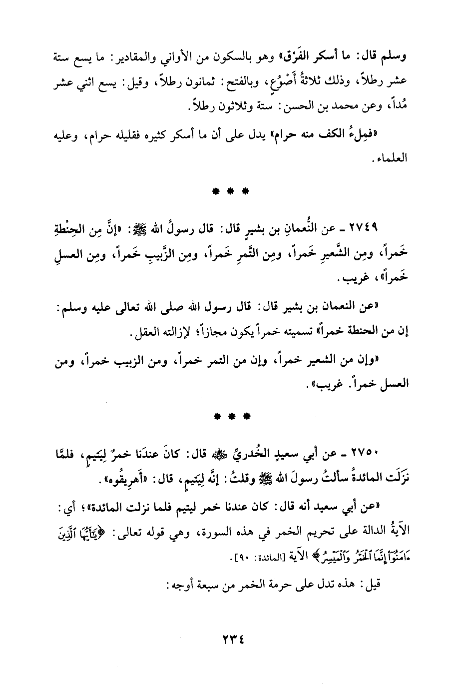 2749 - عن النُّعمانِ بن بشيرٍ قال: قال رسولُ الله - صلى الله عليه وسلم -: "إنَّ مِن الحِنْطةِ خَمراً، ومِن الشَّعيرِ خَمراً، ومِن التَّمرِ خَمراً، ومِن الزَّبيبِ خَمراً، ومِن العسلِ خَمراً"، غريب.