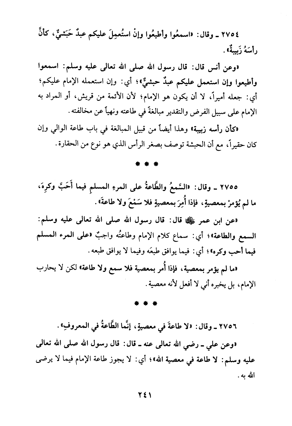 "كأن رأسه زبيبة" وهذا أيضاً من قبيل المبالغة في باب طاعة الوالي وإن كان حقيراً، مع أن الحبشة توصف بصغر الرأس الذي هو نوع من الحقارة.