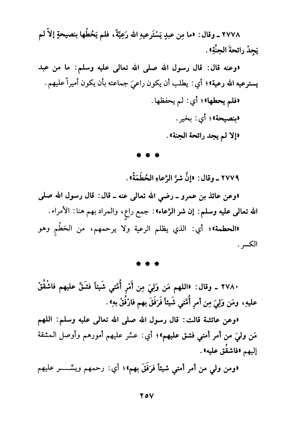 2780 - وقال: "اللهم مَن وَلِيَ مِن أَمْرِ أُمَّتي شَيئاً فشَقَّ عليهم فاشْقُقْ عليهِ، ومَن وَلِيَ مِن أمرِ أُمَّتي شَيئاً فَرَفَقَ بهم فارْفُقْ بهِ".