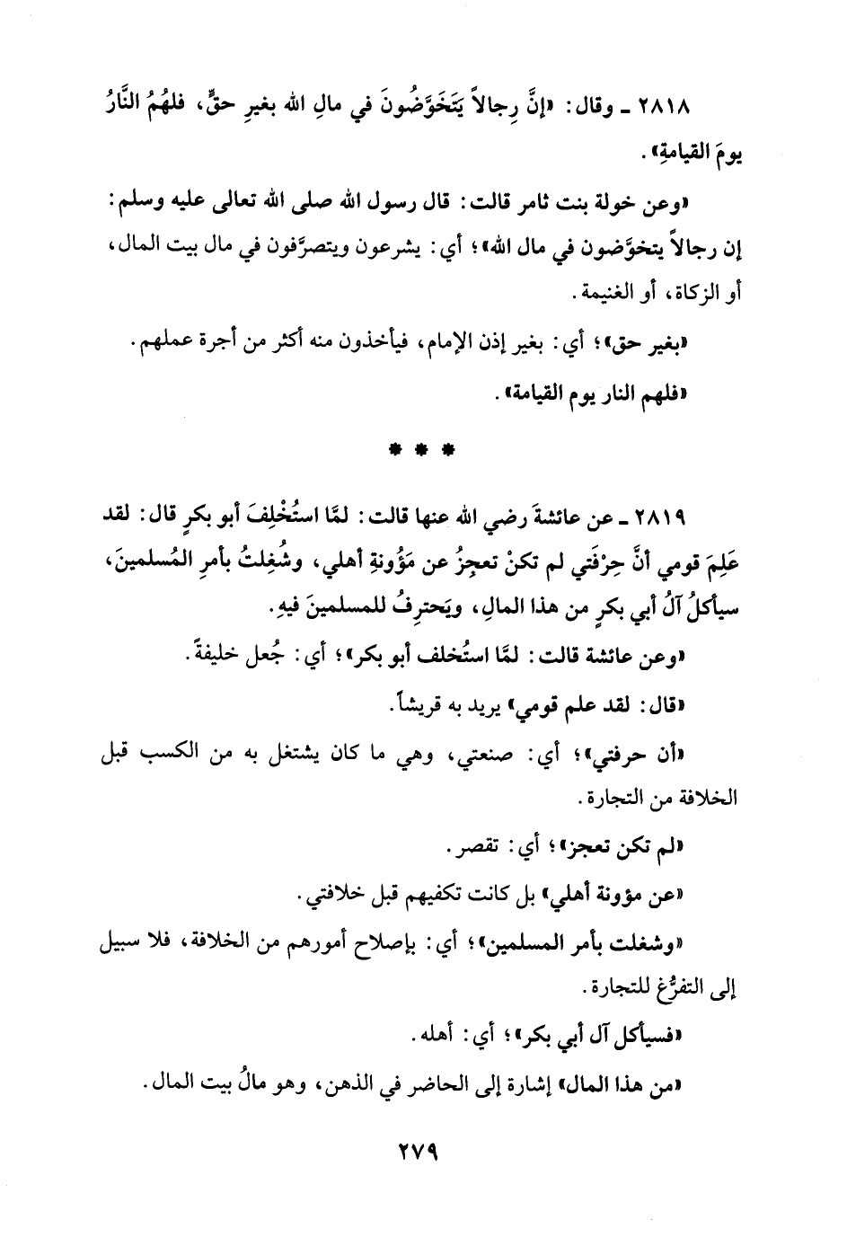 2818 - وقال: "إنَّ رِجالًا يَتَخَوَّضُونَ في مالِ الله بغيرِ حق، فلهُمُ النَّارُ يومَ القيامةِ".