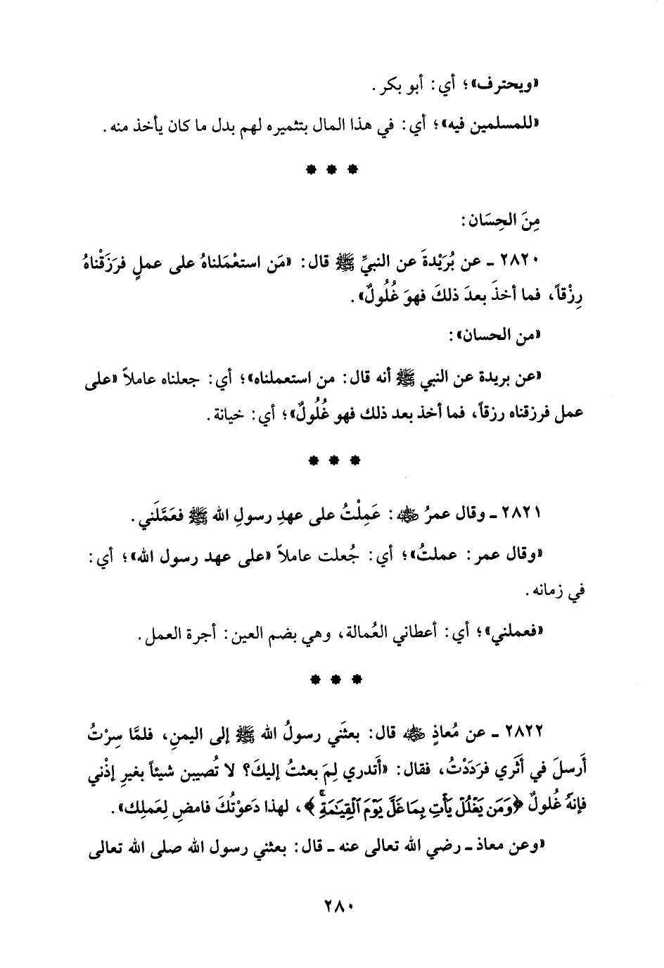 2820 - عن بُرَيْدةَ عن النبيِّ - صلى الله عليه وسلم - قال: "مَن استعْمَلناهُ على عملٍ فرَزَقْناهُ رِزْقًا، فما أخذَ بعدَ ذلكَ فهوَ غُلُولٌ".