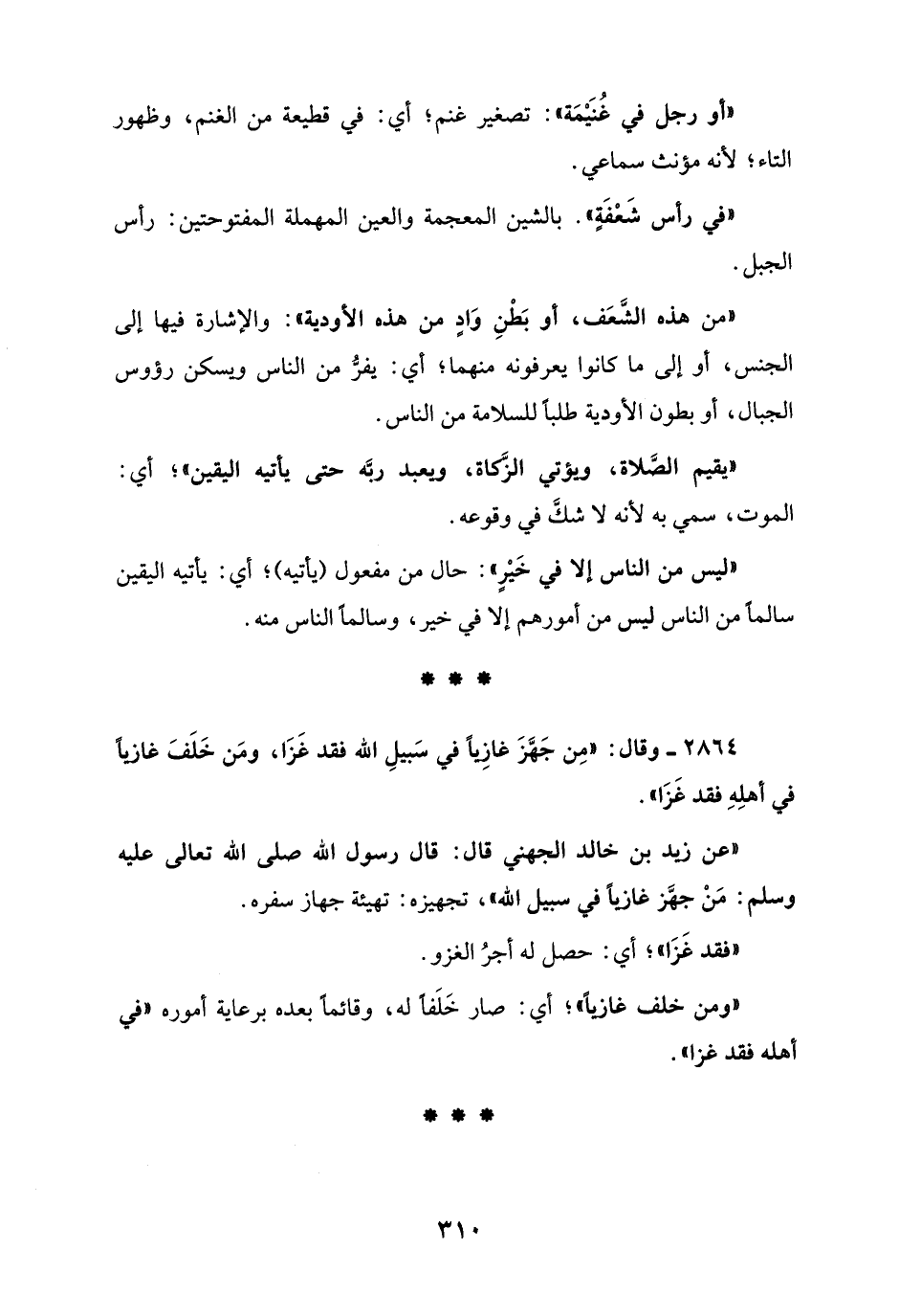 2864 - وقال: "مِن جَهَّزَ غازِيًا في سَبيلِ الله فقد غَزَا، ومَن خَلَفَ غازيًا في أهلِهِ فقد غَزَا".