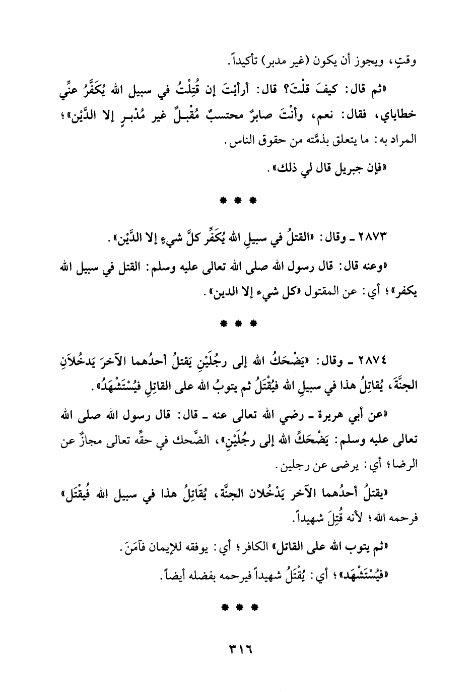 2874 - وقال: "يَضْحَكُ الله إلى رجُلَيْنِ يَقتلُ أحدُهما الآخرَ يَدخُلَانِ الجنَّةَ، يُقاتِلُ هذا في سبيلِ الله فيُقْتَلُ ثم يتوبُ الله على القاتِلِ فيُسْتَشْهَدُ".