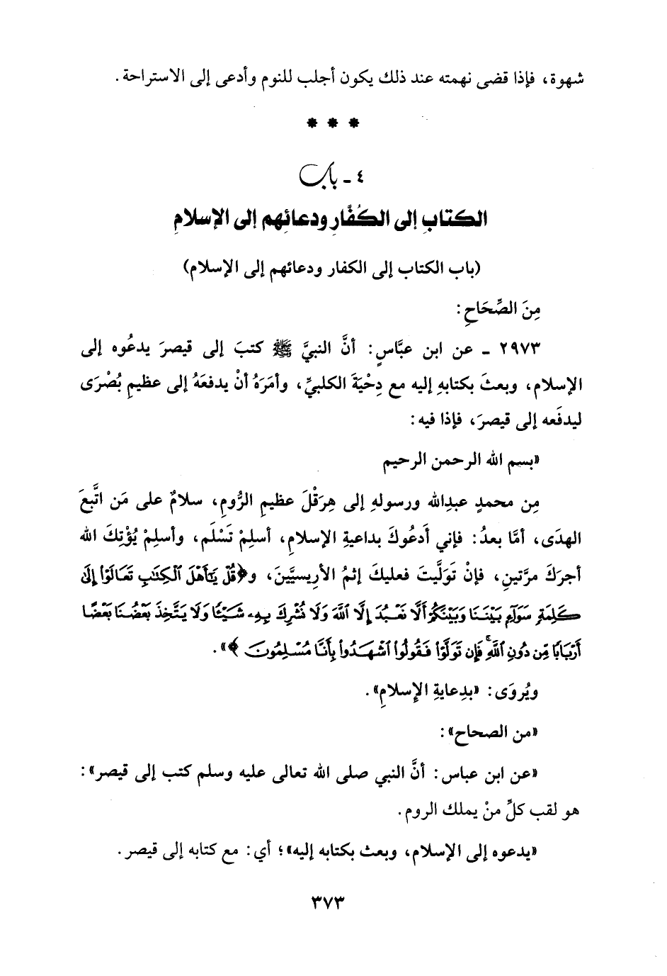 4 - باب الكتابِ إلى الكُفَّارِ ودعائِهم إلى الإسلامِ