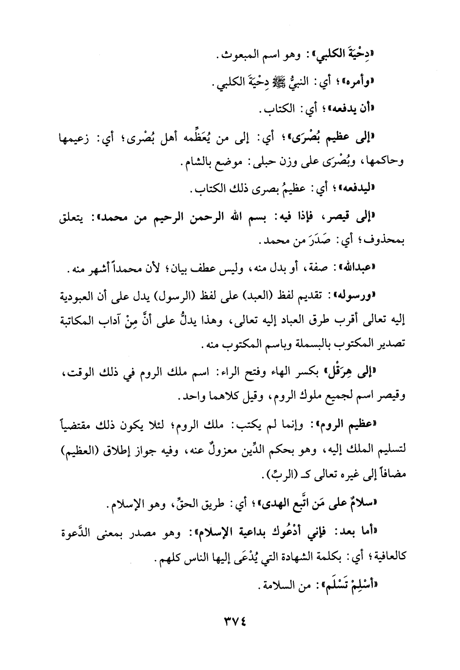"عظيم الروم": وإنما لم يكتب: ملك الروم؛ لئلا يكون ذلك مقتضياً لتسليم الملك إليه، وهو بحكم الدِّين معزولٌ عنه، وفيه جواز إطلاق (العظيم) مضافاً إلى غيره تعالى كـ (الربِّ).