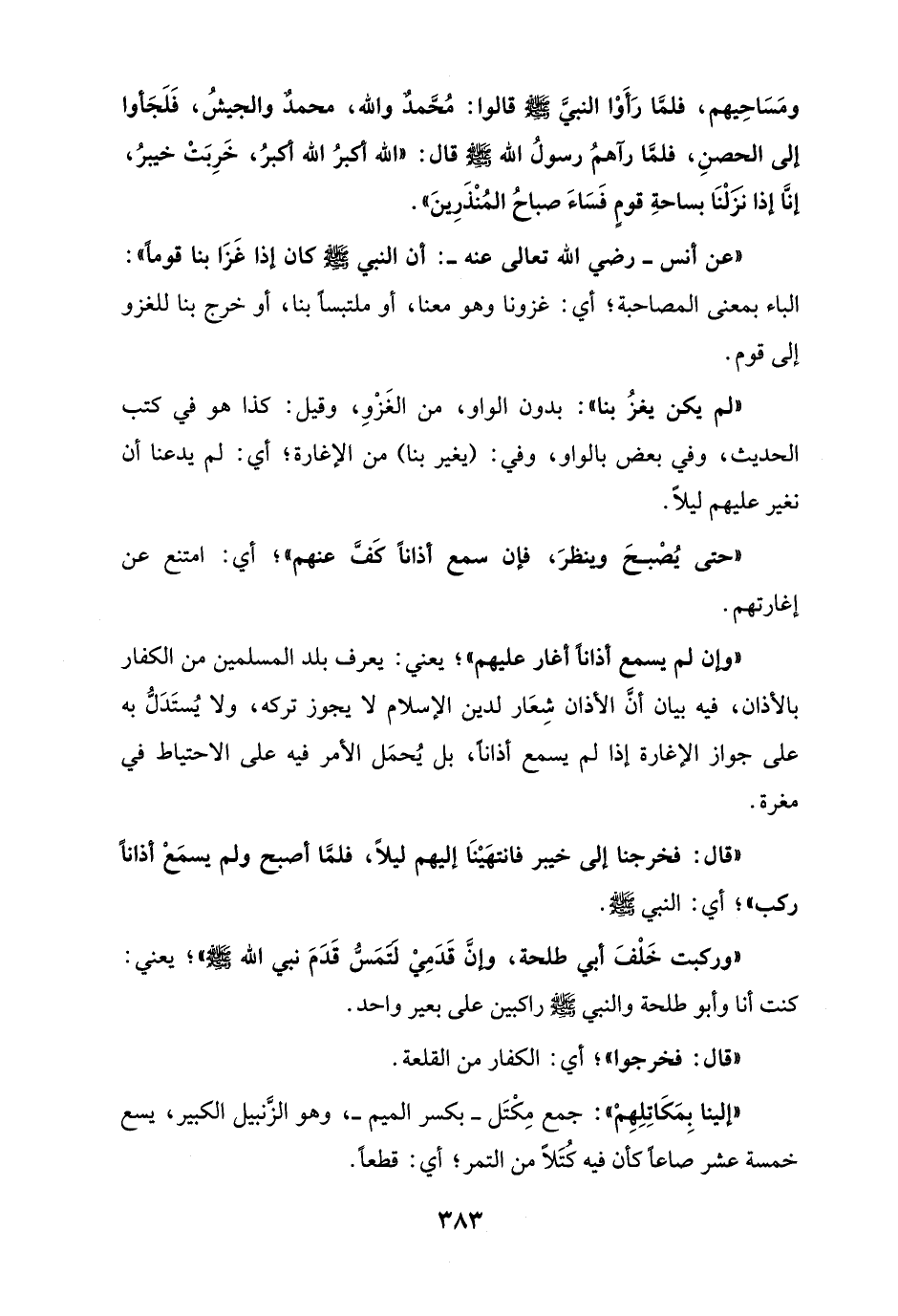 "قال: فخرجنا إلى خيبر فانتهَيْنَا إليهم ليلاً، فلمَّا أصبح ولم يسمَعْ أذاناً ركب"؛ أي: النبي - صلى الله عليه وسلم -.