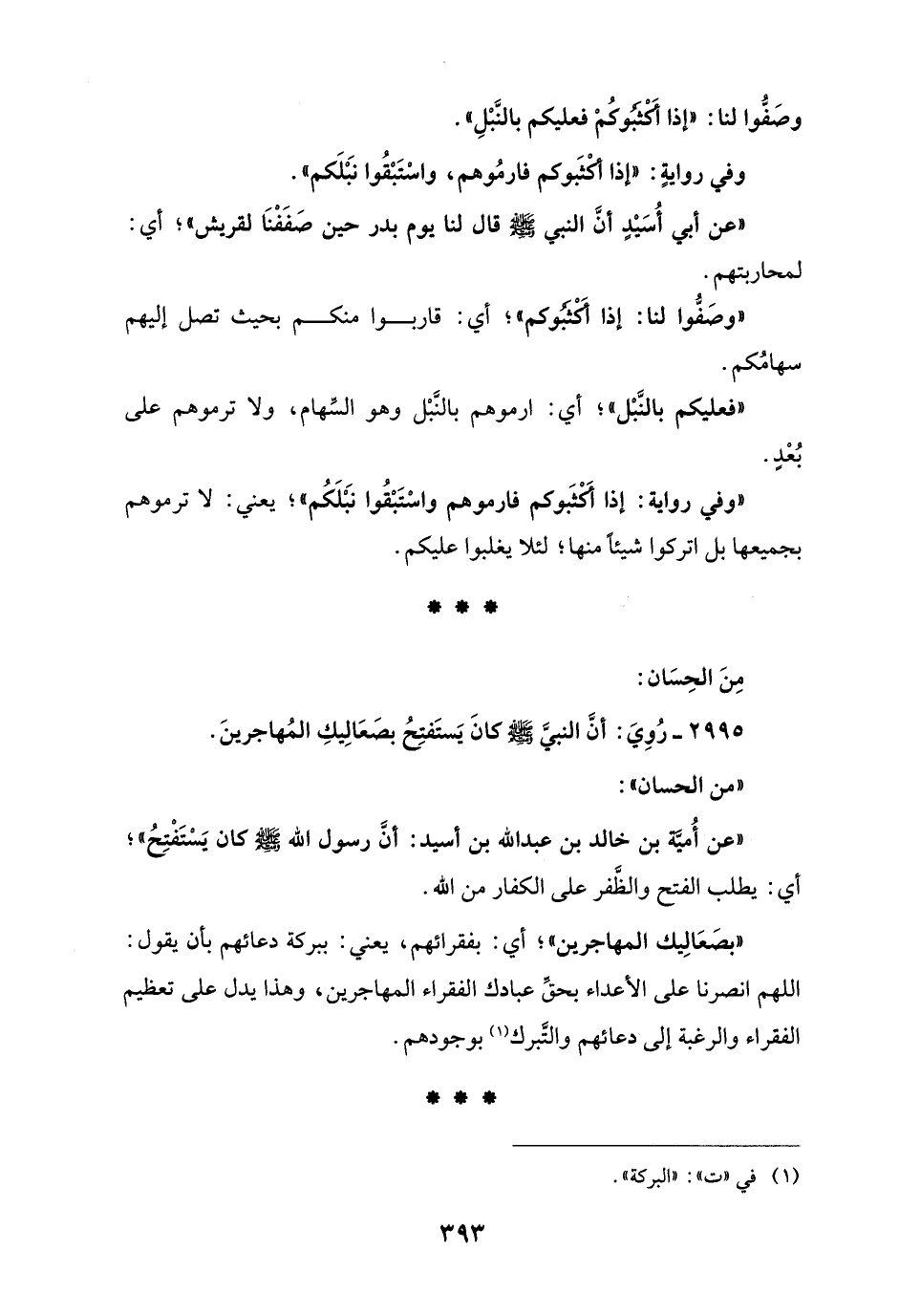 وفي روايةٍ: "إذا أكْثَبوكم فارمُوهم، واسْتَبْقُوا نَبْلَكم".