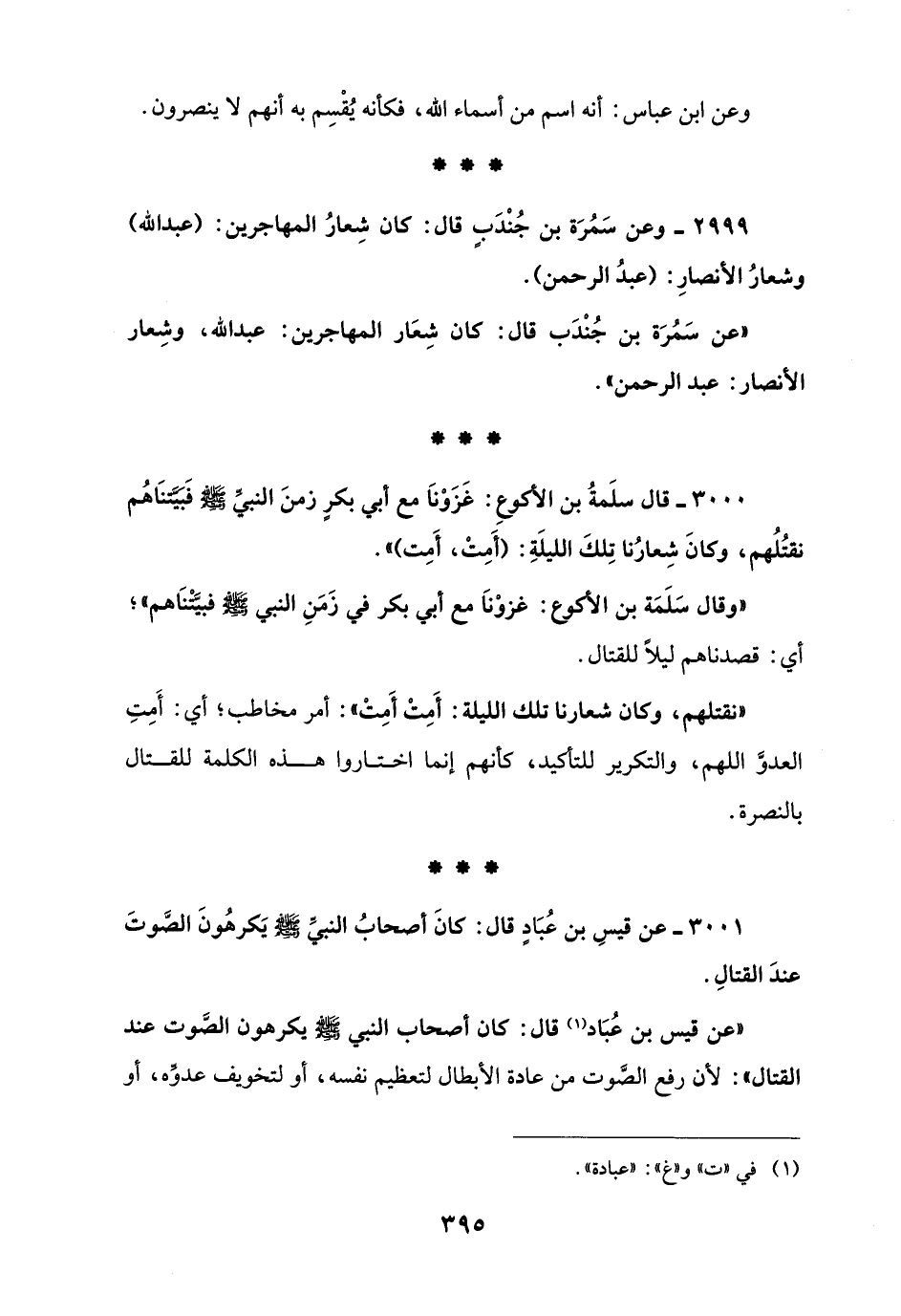 3001 - عن قيسِ بن عُبَادٍ قال: كَانَ أصحابُ النبيِّ - صلى الله عليه وسلم - يَكرهُونَ الصَّوتَ عندَ القتالِ.