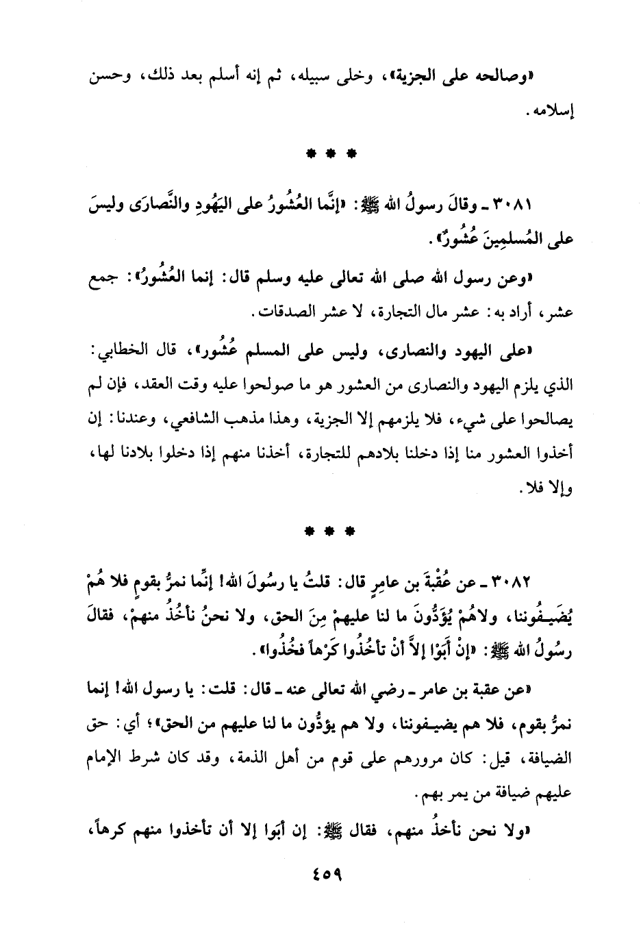 3081 - وقالَ رسولُ الله - صلى الله عليه وسلم -: "إنَّما العُشُورُ على اليَهُودِ والنَّصارَى وليسَ على المُسلمِينَ عُشُورٌ".