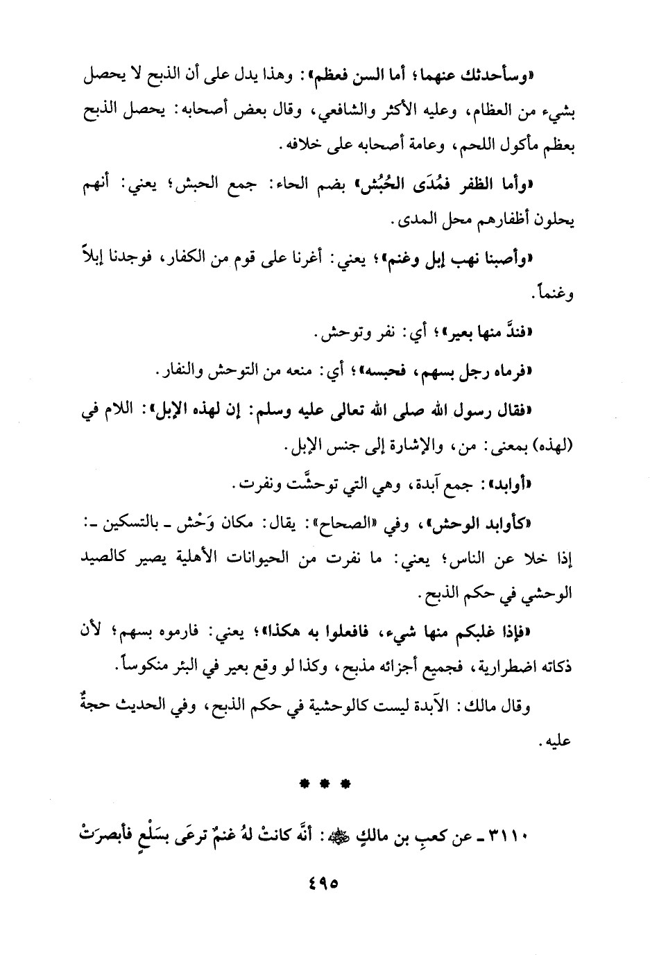 3110 - عن كعبِ بن مالك - رضي الله عنه -: أنَّه كانتْ لهُ غنمٌ ترعَى بسَلْع فأبصرَتْ