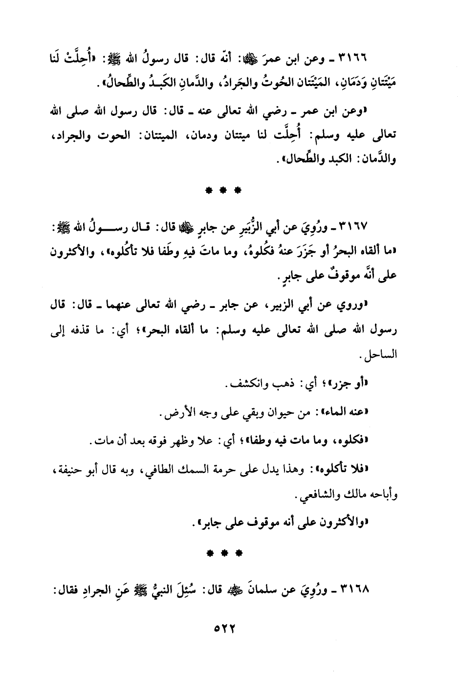 3168 - ورُوِيَ عن سلمانَ - رضي الله عنه - قال: سُئِلَ النبيُّ - صلى الله عليه وسلم - عَنِ الجرادِ فقال: