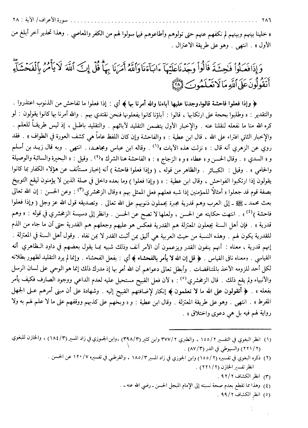 الأعراف : ( 28 ) وإذا فعلوا فاحشة . . . . .