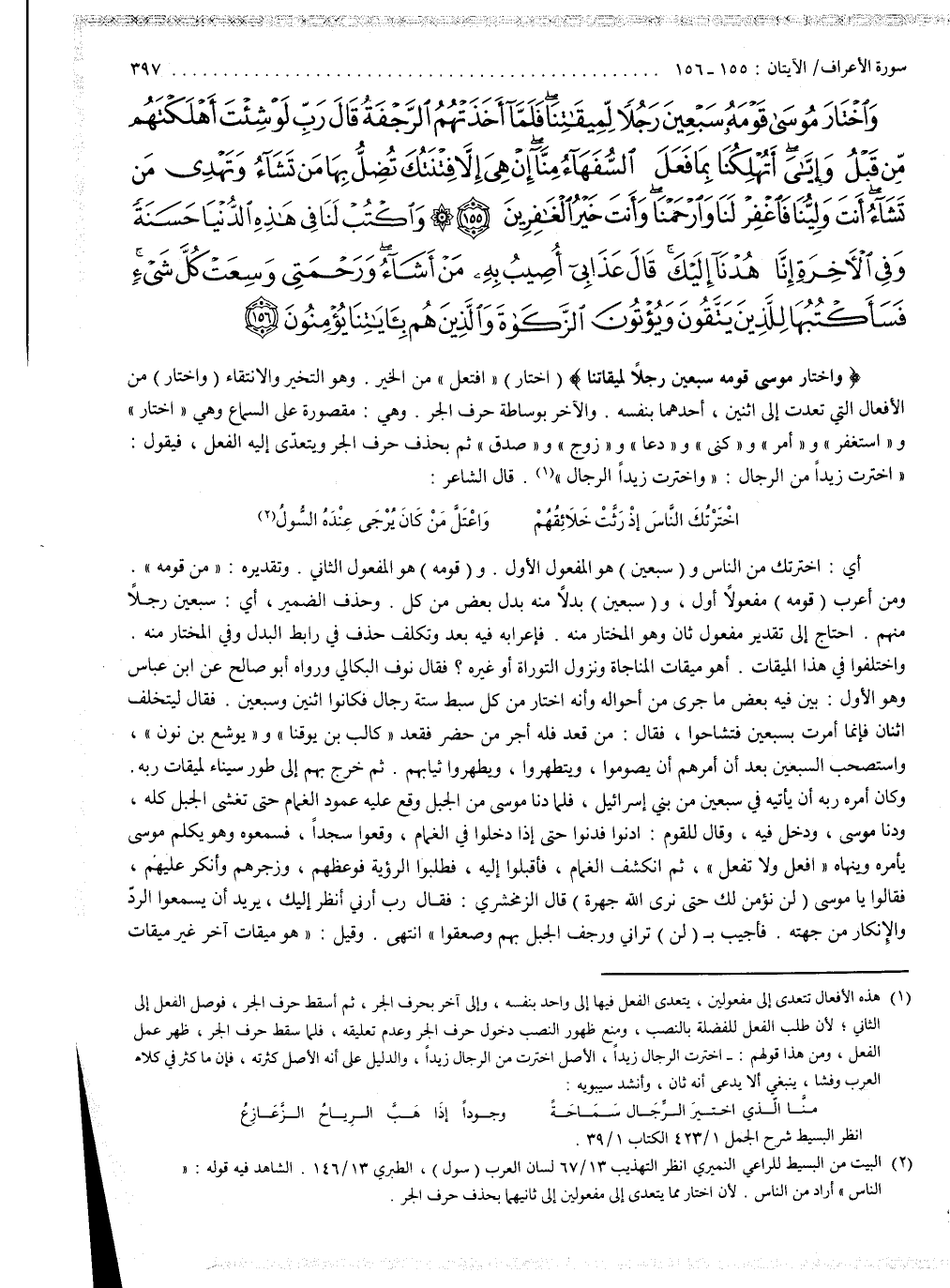 الأعراف : ( 155 ) واختار موسى قومه . . . . .