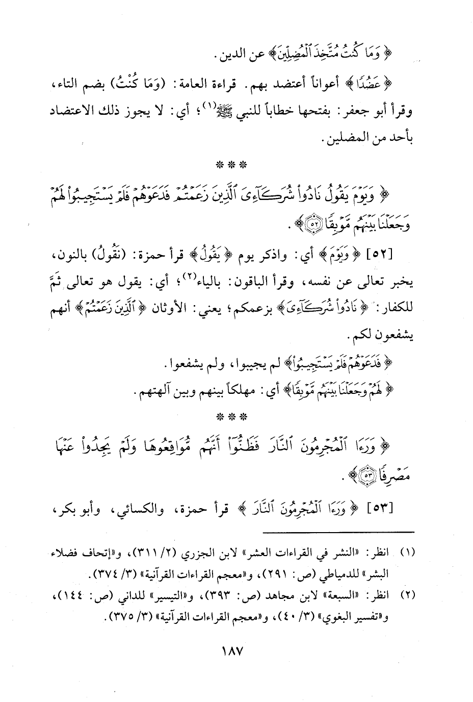 [53] {وَرَأَى الْمُجْرِمُونَ النَّارَ} قرأ حمزة، والكسائي، وأبو بكر،