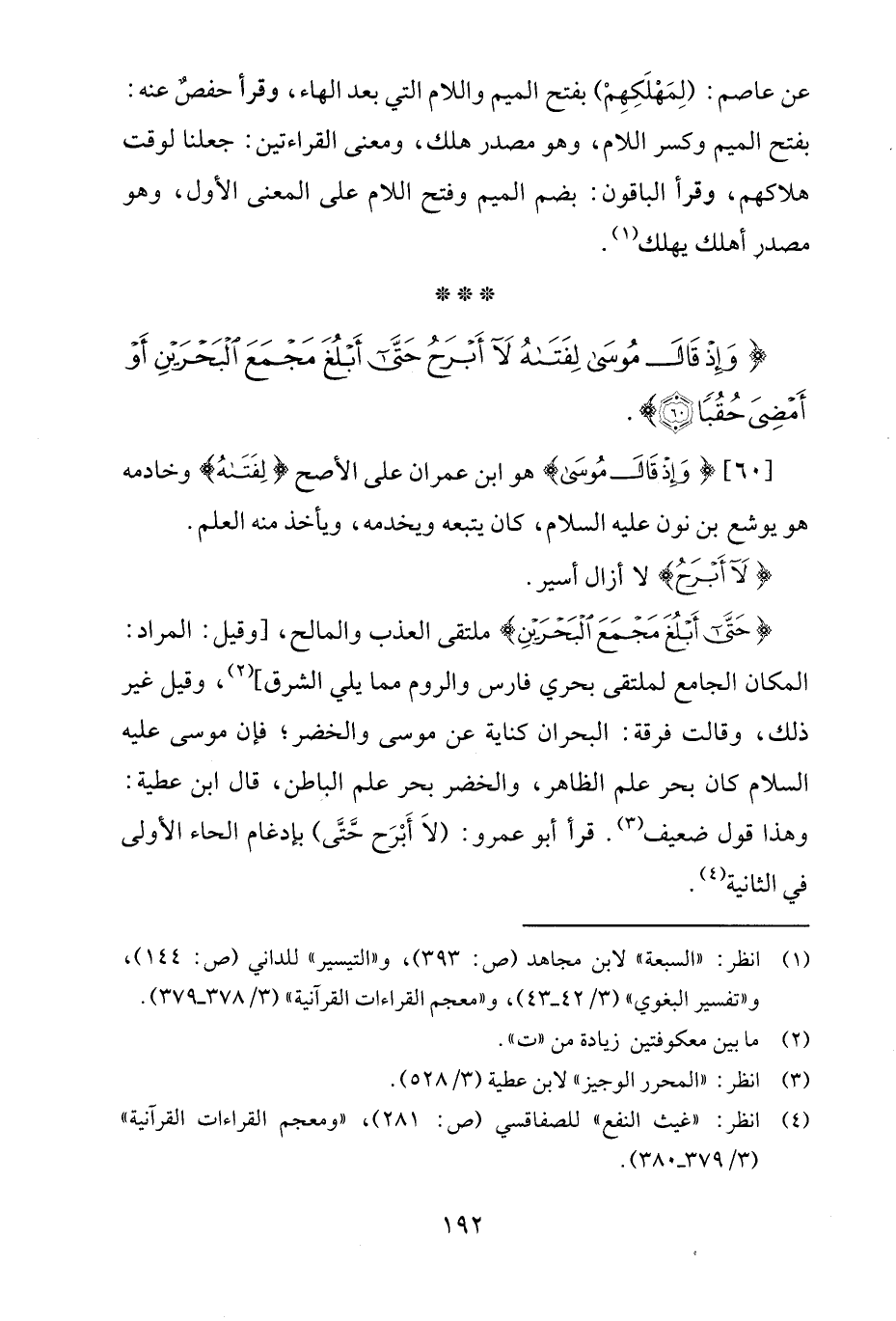 (¬4) انظر: "غيث النفع" للصفاقسي (ص: 281)، "ومعجم القراءات القرآنية" (3/ 379 - 380).