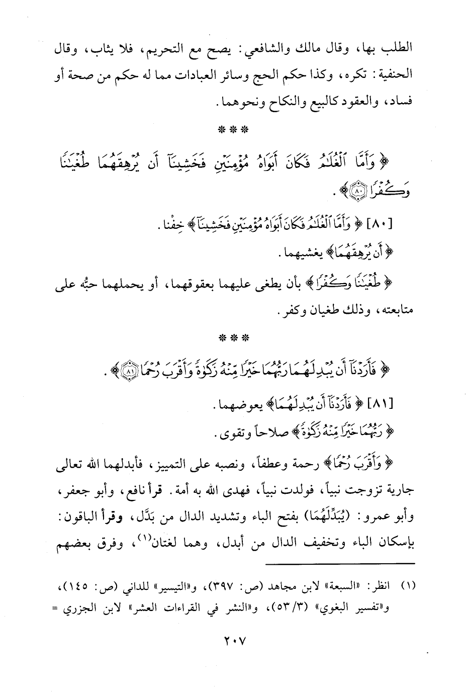 {وَأَمَّا الْغُلَامُ فَكَانَ أَبَوَاهُ مُؤْمِنَيْنِ فَخَشِينَا أَنْ يُرْهِقَهُمَا طُغْيَانًا وَكُفْرًا (80)}.