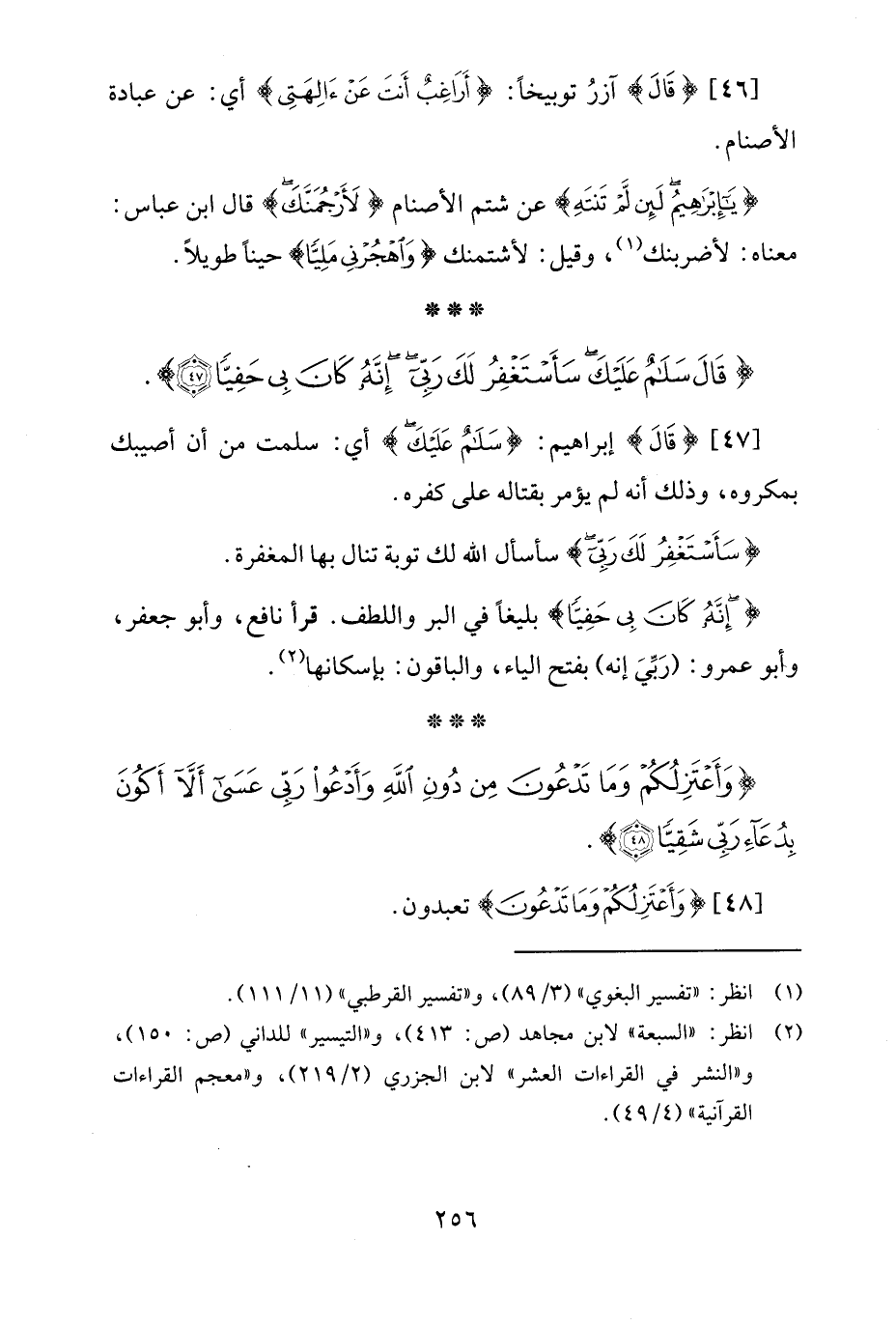 {إِنَّهُ كَانَ بِي حَفِيًّا} بليغًا في البر واللطف. قرأ نافع، وأبو جعفر، وأبو عمرو: (رَبِّيَ إنه) بفتح الياء، والباقون: بإسكانها (¬2).