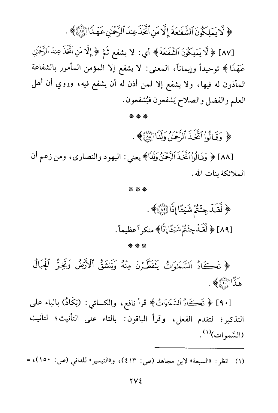 [88] {وَقَالُوا اتَّخَذَ الرَّحْمَنُ وَلَدًا} يعني: اليهود والنصارى، ومن زعم أن الملائكة بنات الله.
