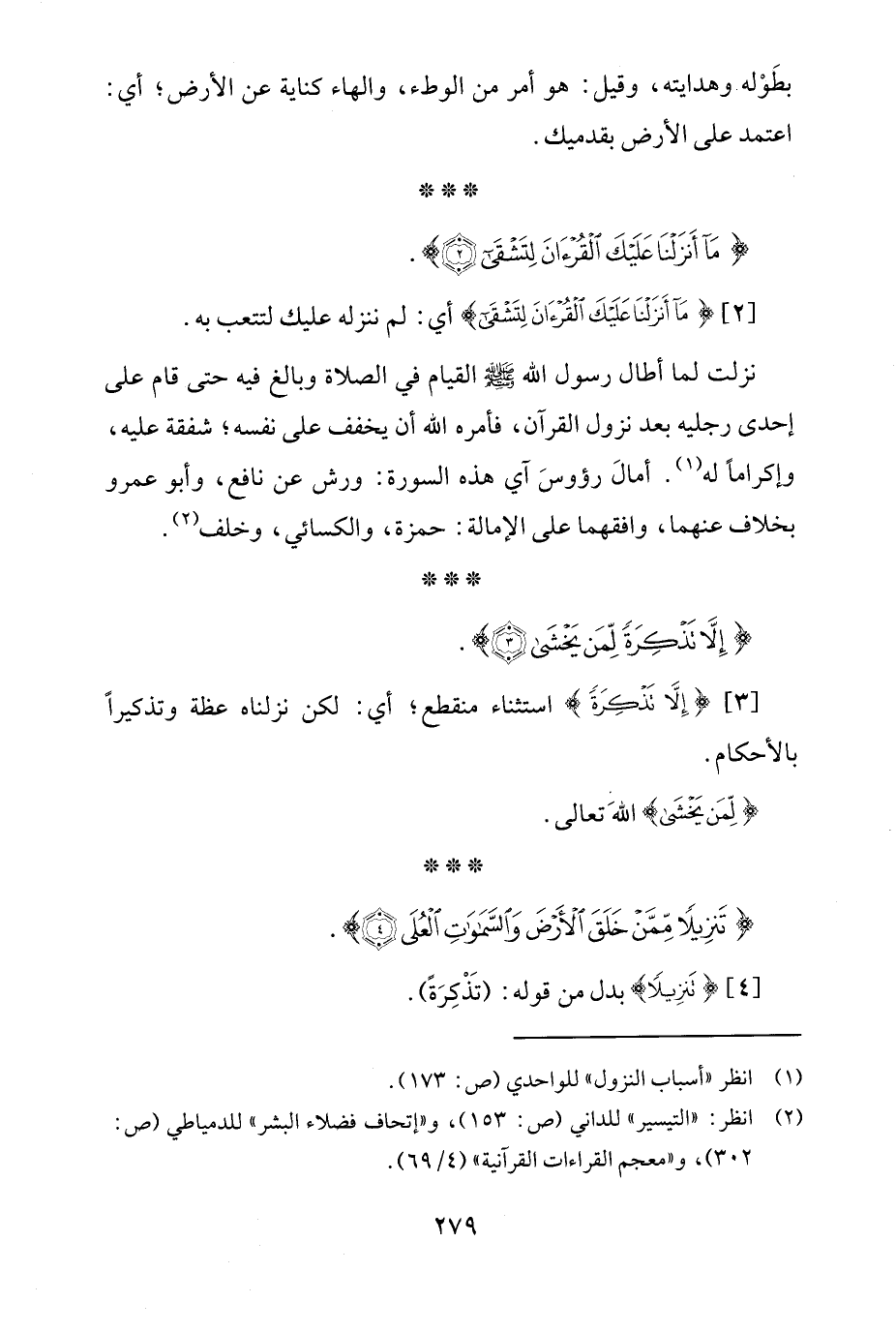 [2] {مَا أَنْزَلْنَا عَلَيْكَ الْقُرْآنَ لِتَشْقَى} أي: لم ننزله عليك لتتعب به.