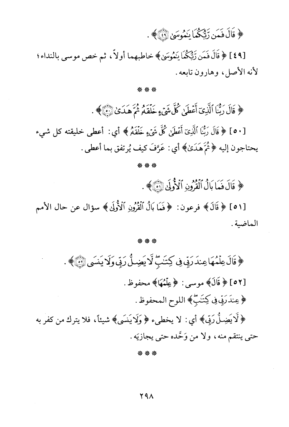 [52] {قَالَ} موسى: {عِلْمُهَا} محفوظ.