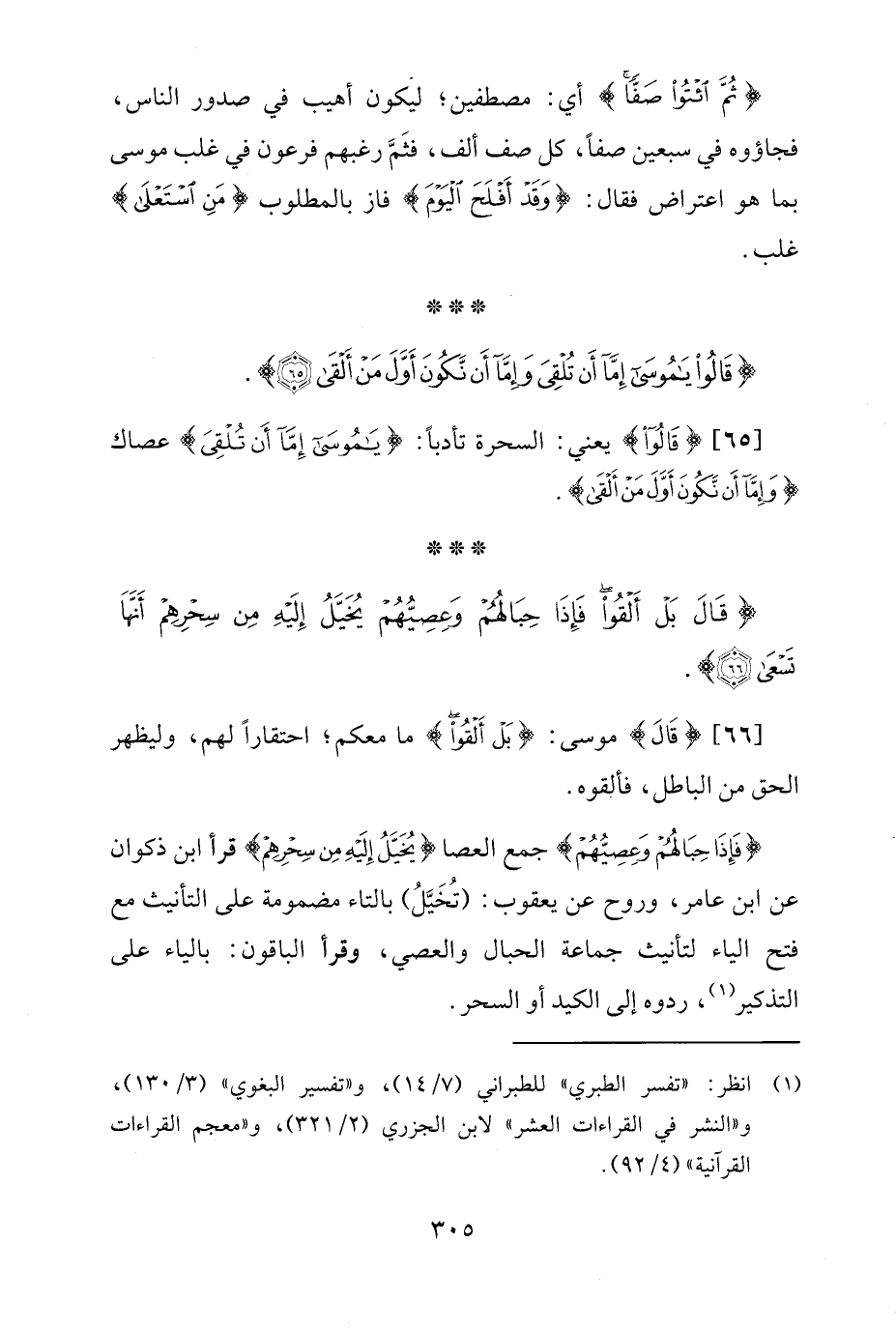 {فَإِذَا حِبَالُهُمْ وَعِصِيُّهُمْ} جمع العصا {يُخَيَّلُ إِلَيْهِ مِنْ سِحْرِهِمْ} قرأ ابن ذكوان عن ابن عامر، وروح عن يعقوب: (تُخَيَّلُ) بالتاء مضمومة على التأنيث مع فتح الياء لتأنيث جماعة الحبال والعصي، وقرأ الباقون: بالياء على التذكير (¬1)، ردوه إلى الكيد أو السحر.
