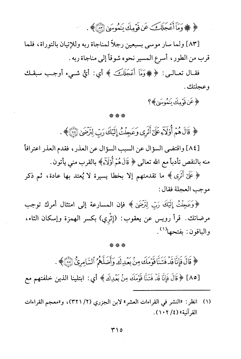{وَعَجِلْتُ إِلَيْكَ رَبِّ لِتَرْضَى} فإن المسارعة إلى امتثال أمرك توجب مرضاتك. قرأ رويس عن يعقوب: (إِثْرِي) بكسر الهمزة وإسكان الثاء، والباقون: بفتحها (¬1).