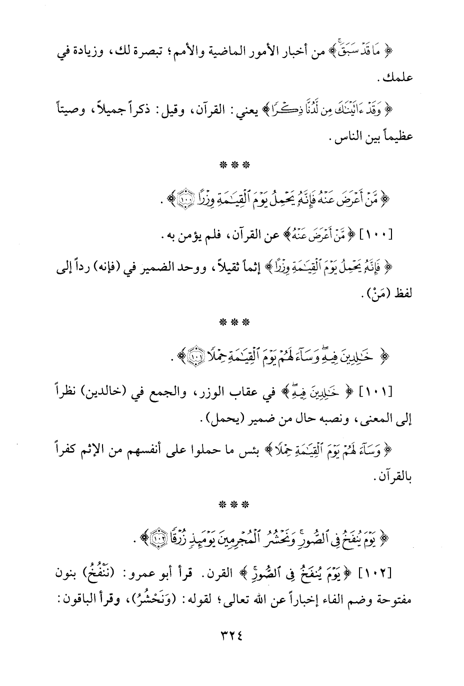 [101] {خَالِدِينَ فِيهِ} في عقاب الوزر، والجمع في (خالدين) نظرًا إلى المعنى، ونصبه حال من ضمير (يحمل).
