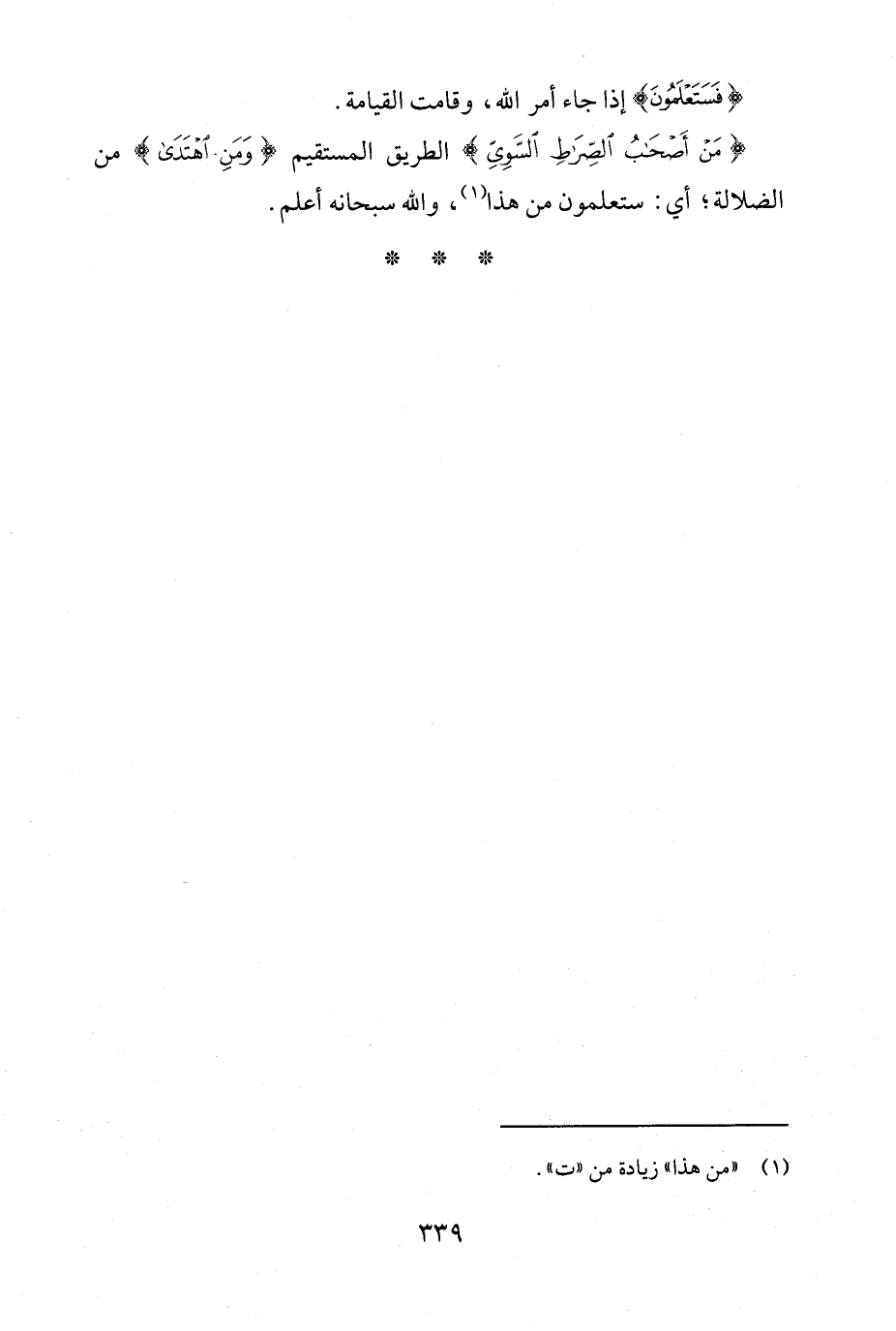 {مَنْ أَصْحَابُ الصِّرَاطِ السَّوِيِّ} الطريق المستقيم {وَمَنِ اهْتَدَى} من الضلالة، أي: ستعلمون من هذا (¬1)، والله سبحانه أعلم.