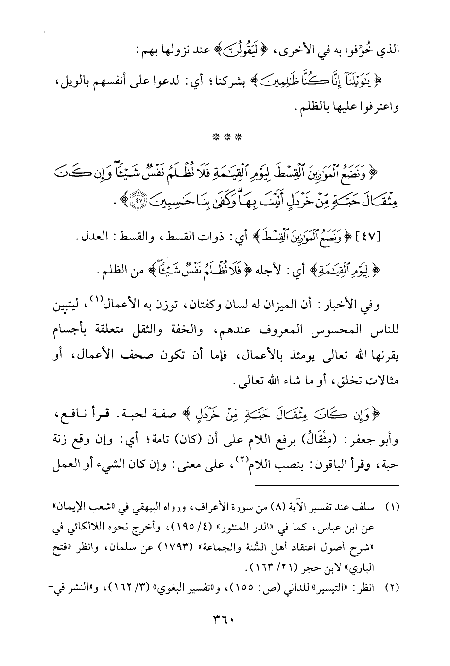 (¬1) سلف عند تفسير الآية (8) من سورة الأعراف، ورواه البيهقي في "شعب الإيمان" عن ابن عباس، كما في "الدر المنثور" (4/ 195)، وأخرج نحوه اللالكائي في "شرح أصول اعتقاد أهل السُّنة والجماعة" (1793) عن سلمان، وانظر "فتح الباري" لابن حجر (21/ 163).