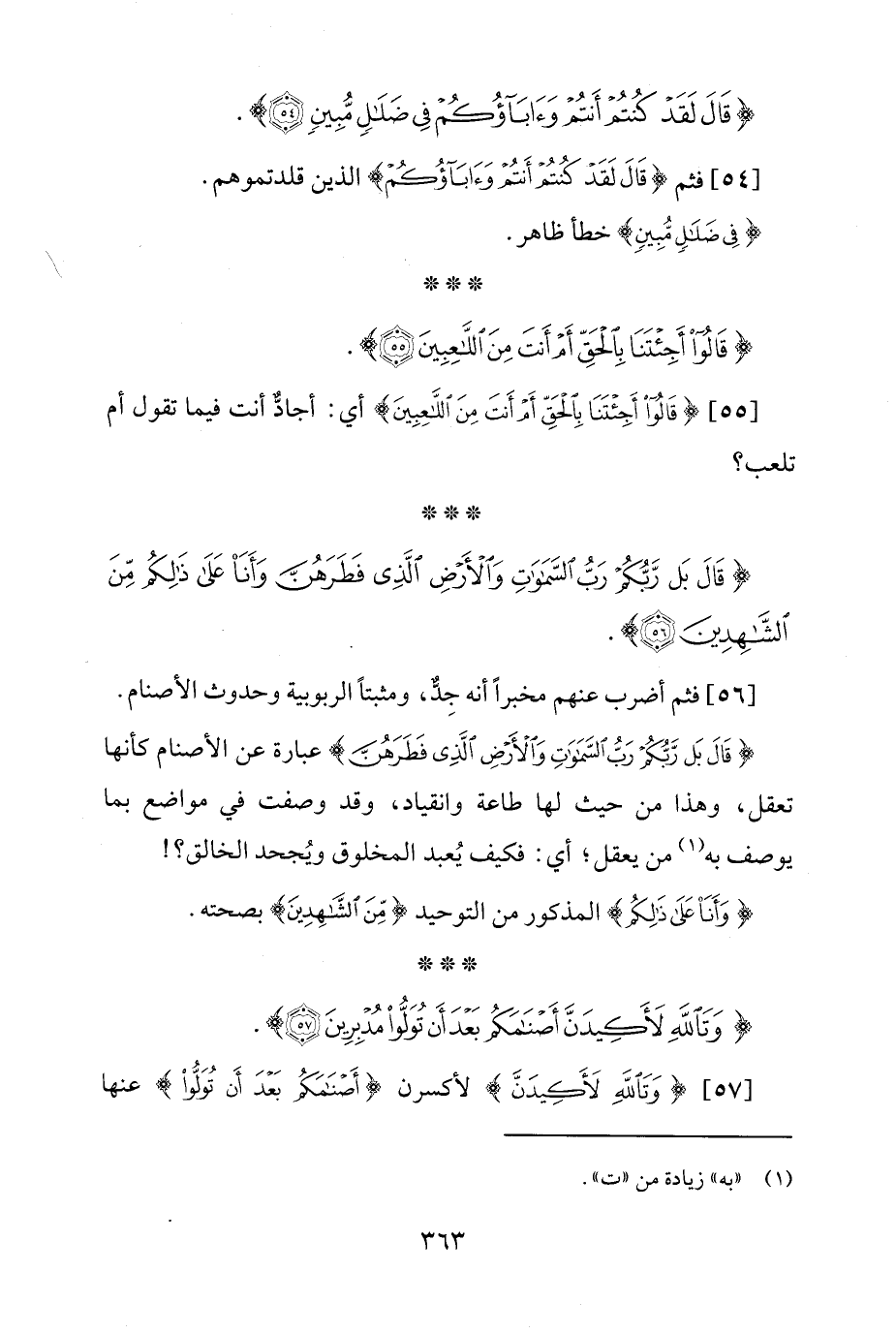 {قَالَ بَلْ رَبُّكُمْ رَبُّ السَّمَاوَاتِ وَالْأَرْضِ الَّذِي فَطَرَهُنَّ وَأَنَا عَلَى ذَلِكُمْ مِنَ الشَّاهِدِينَ (56)} [الأنبياء: 56].