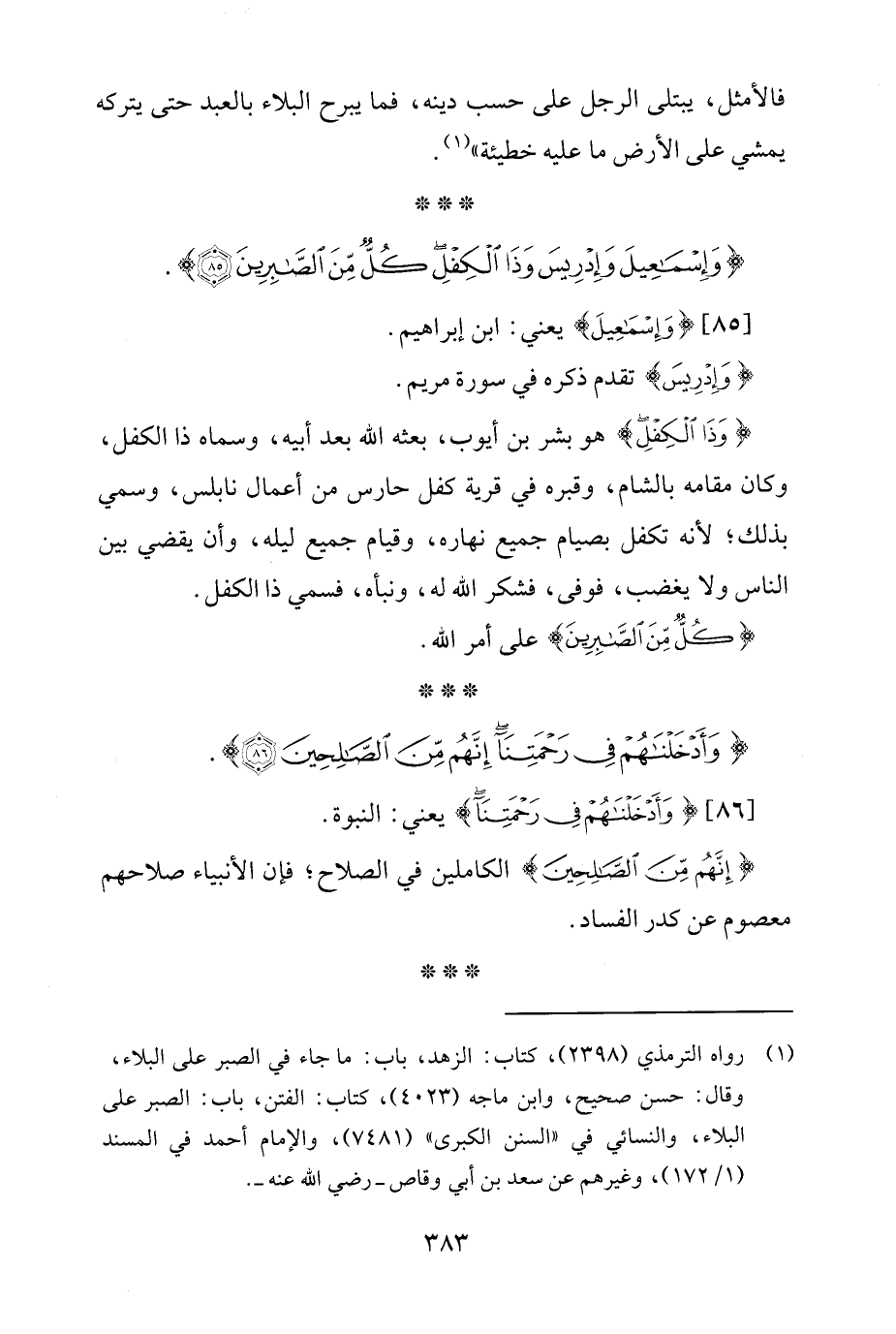 {وَإِسْمَاعِيلَ وَإِدْرِيسَ وَذَا الْكِفْلِ كُلٌّ مِنَ الصَّابِرِينَ (85)} [الأنبياء: 85].
