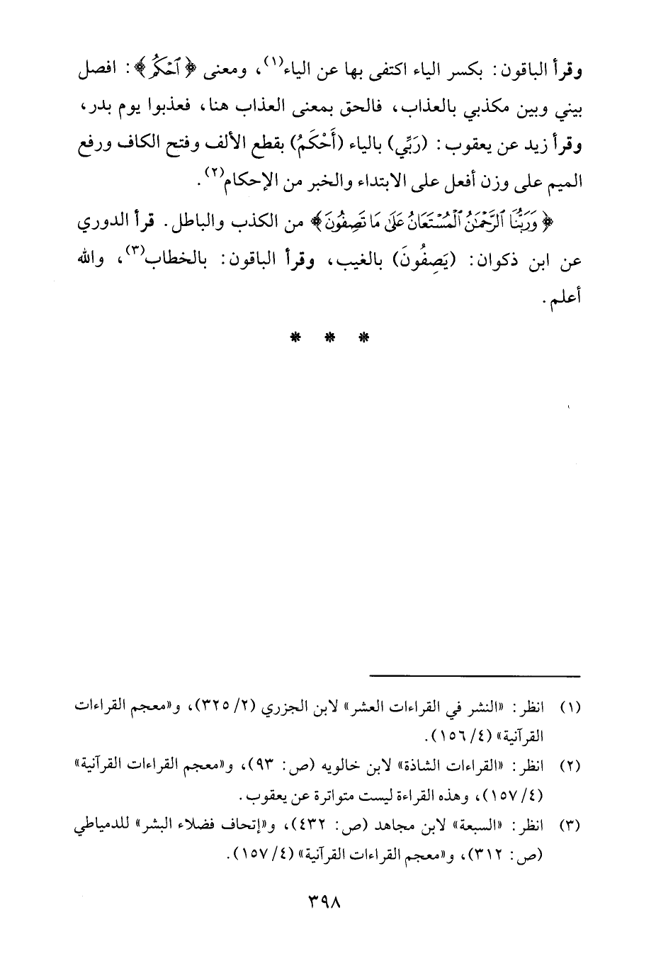 (¬3) انظر: "السبعة" لابن مجاهد (ص: 432)، و"إتحاف فضلاء البشر" للدمياطي (ص: 312)، و"معجم القراءات القرآنية" (4/ 157).