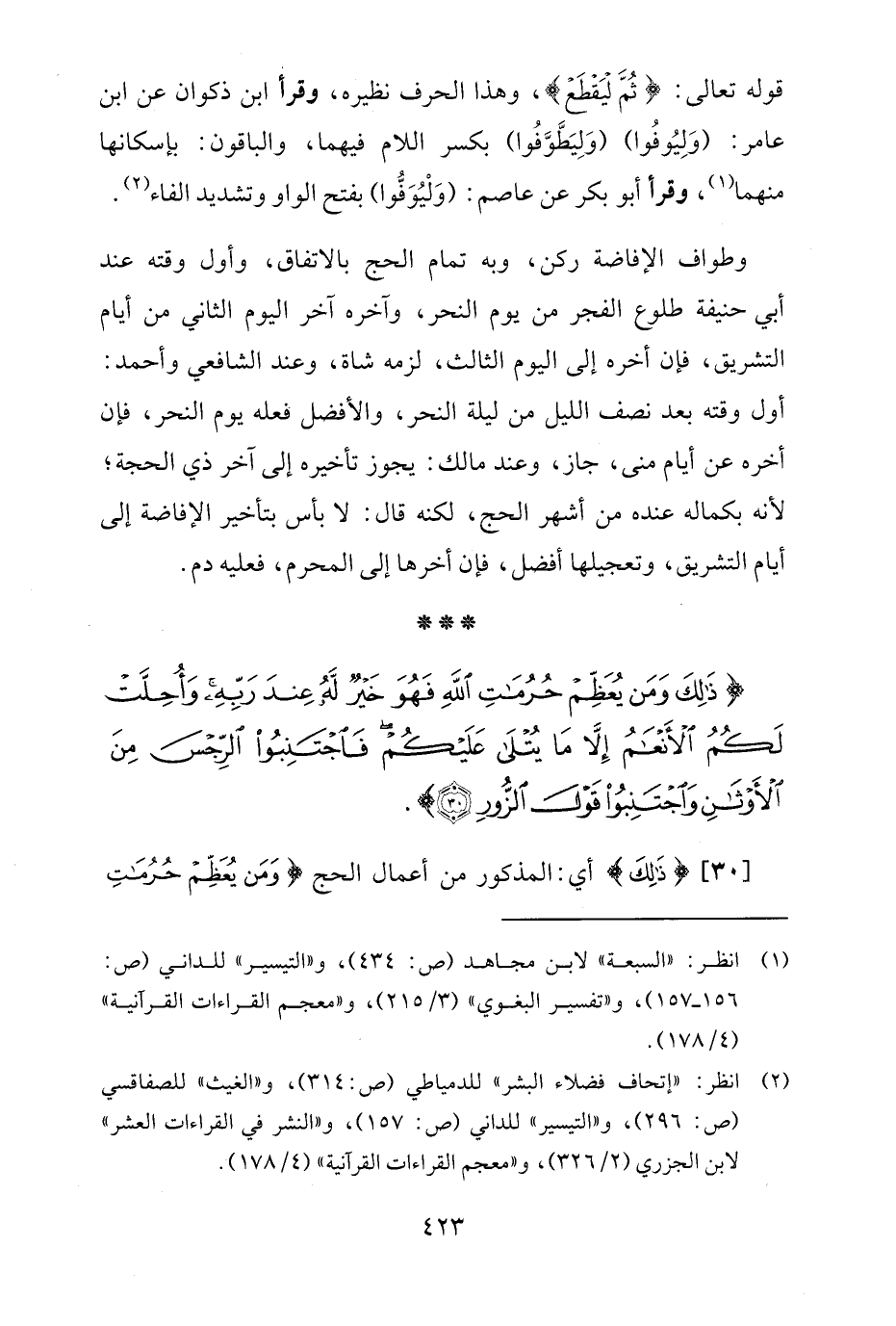 {ذَلِكَ وَمَنْ يُعَظِّمْ حُرُمَاتِ اللَّهِ فَهُوَ خَيْرٌ لَهُ عِنْدَ رَبِّهِ وَأُحِلَّتْ لَكُمُ الْأَنْعَامُ إِلَّا مَا يُتْلَى عَلَيْكُمْ فَاجْتَنِبُوا الرِّجْسَ مِنَ الْأَوْثَانِ وَاجْتَنِبُوا قَوْلَ الزُّورِ (30)}.