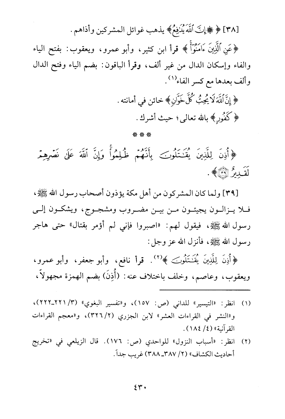 {أُذِنَ لِلَّذِينَ يُقَاتَلُونَ} (¬2). قرأ نافع، وأبو جعفر، وأبو عمرو، ويعقوب، وعاصم، وخلف باختلاف عنه: (أُذِنَ) بضم الهمزة مجهولًا،