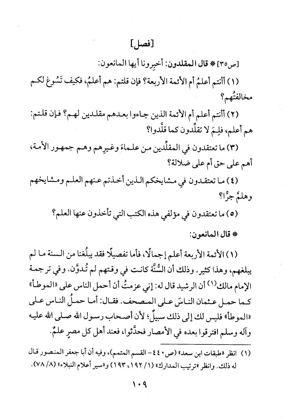 [ص ٣٥] * قال المقلدون: أخبِرونا أيها المانعون: