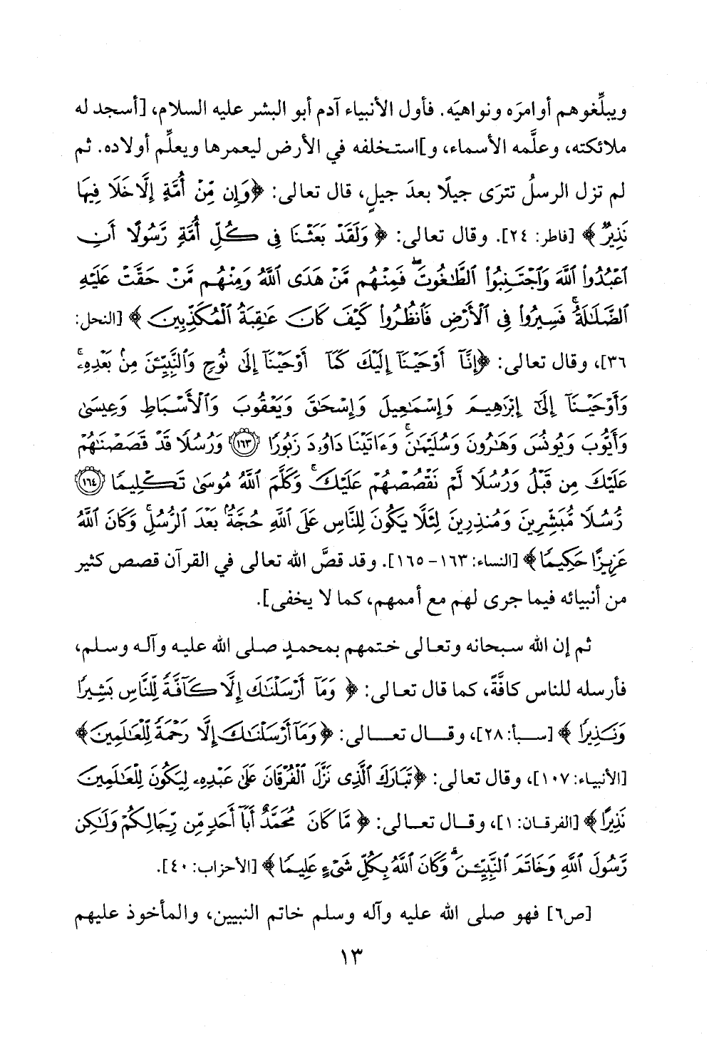 ثم إن الله سبحانه وتعالى ختمهم بمحمدٍ صلى الله عليه وآله وسلم، فأرسله للناس كافَّةً، كما قال تعالى: {وَمَا أَرْسَلْنَاكَ إِلَّا كَافَّةً لِلنَّاسِ بَشِيرًا وَنَذِيرًا} [سبأ: ٢٨]، وقال تعالى: {وَمَا أَرْسَلْنَاكَ إِلَّا رَحْمَةً لِلْعَالَمِينَ} [الأنبياء: ١٠٧]، وقال تعالى: {تَبَارَكَ الَّذِي نَزَّلَ الْفُرْقَانَ عَلَى عَبْدِهِ لِيَكُونَ لِلْعَالَمِينَ نَذِيرًا} [الفرقان: ١]، وقال تعالى: {مَا كَانَ مُحَمَّدٌ أَبَا أَحَدٍ مِنْ رِجَالِكُمْ وَلَكِنْ رَسُولَ اللَّهِ وَخَاتَمَ النَّبِيِّينَ وَكَانَ اللَّهُ بِكُلِّ شَيْءٍ عَلِيمًا} [الأحزاب: ٤٠].