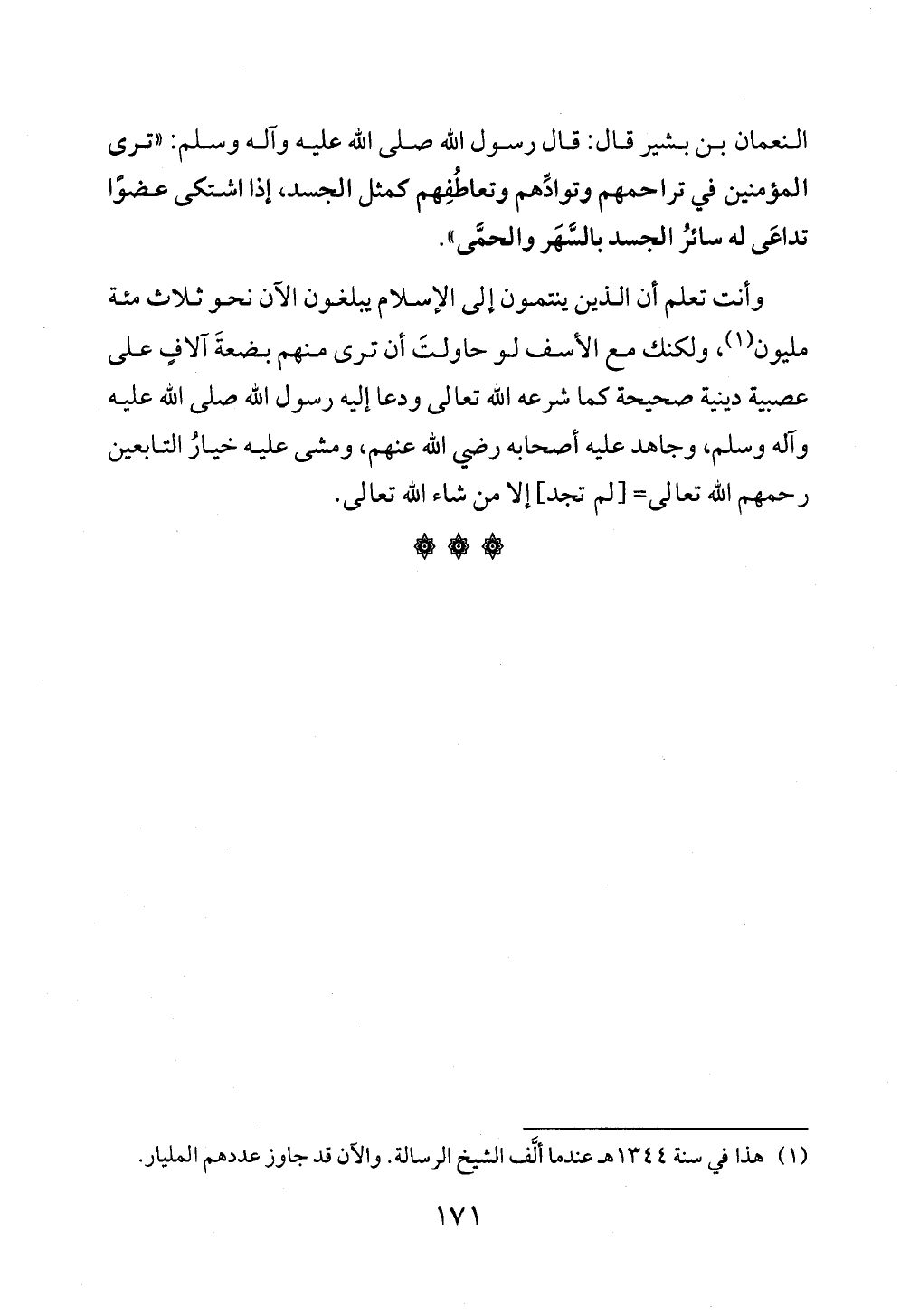 (¬١) هذا في سنة ١٣٤٤ هـ عندما ألَّف الشيخ الرسالة. والآن قد جاوز عددهم المليار.