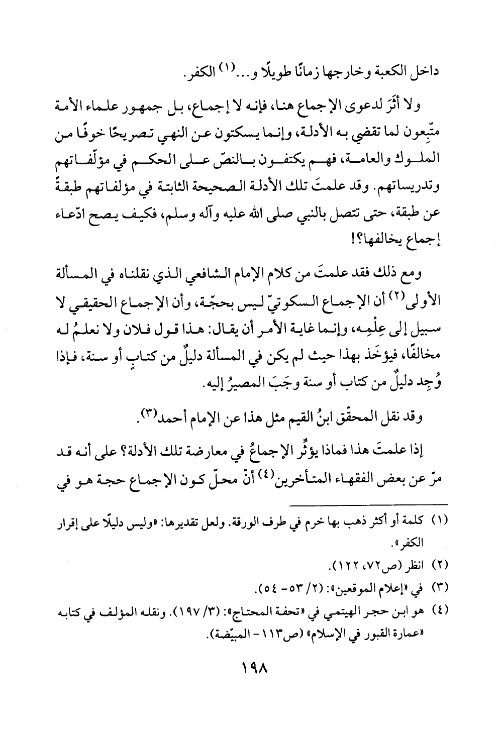 ولا أثَرَ لدعوى الإجماع هنا، فإنه لا إجماع، بل جمهور علماء الأمة متّبِعون لما تقضي به الأدلة، وإنما يسكتون عن النهي تصريحًا خوفًا من الملوك والعامة، فهم يكتفون بالنصّ على الحكم في مؤلّفاتهم وتدريساتهم. وقد علمتَ تلك الأدلة الصحيحة الثابتة في مؤلفاتهم طبقةً عن طبقة، حتى تتصل بالنبي صلى الله عليه وآله وسلم، فكيف يصح ادّعاء إجماع يخالفها؟!