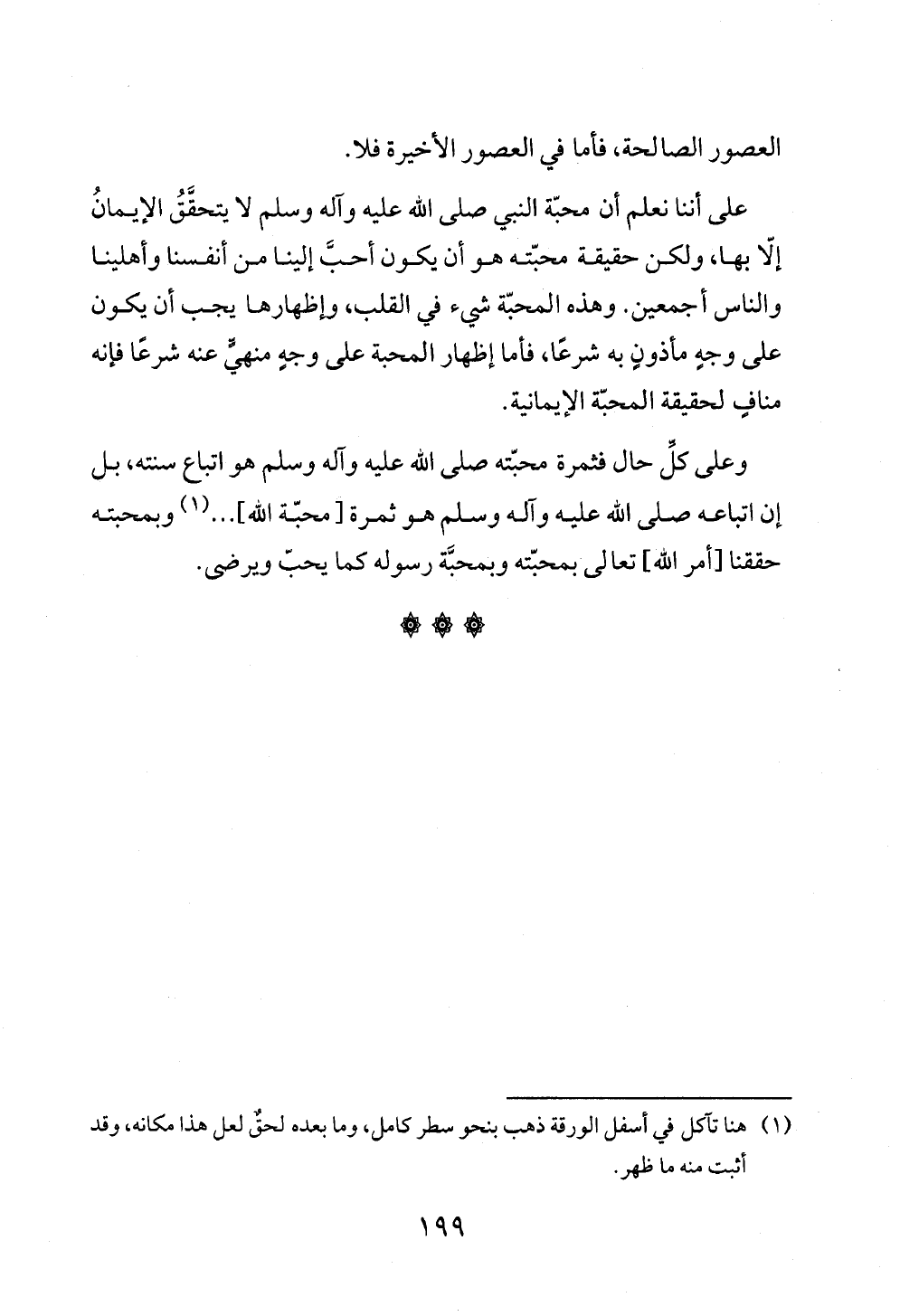 وعلى كلِّ حال فثمرة محبّته صلى الله عليه وآله وسلم هو اتباع سنته، بل إن اتباعه صلى الله عليه وآله وسلم هو ثمرة [محبّة الله] ... (¬١) وبمحبته حققنا [أمر الله] تعالى بمحبّته وبمحبَّة رسوله كما يحبّ ويرضى.