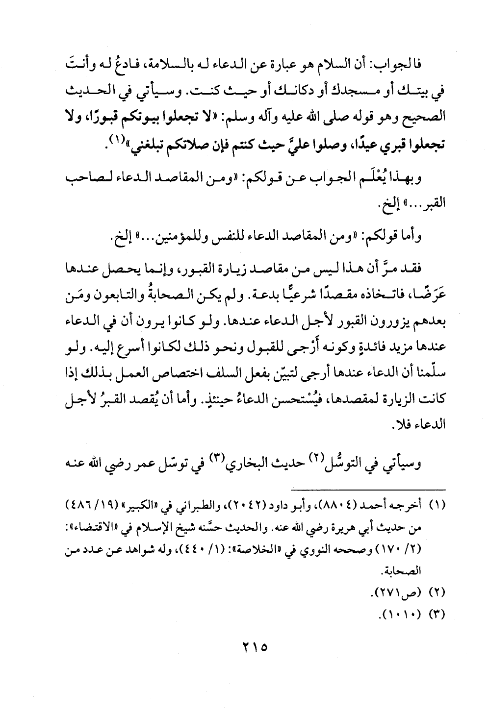 فالجواب: أن السلام هو عبارة عن الدعاء له بالسلامة، فادعُ له وأنتَ في بيتك أو مسجدك أو دكانك أو حيث كنت. وسيأتي في الحديث الصحيح وهو قوله صلى الله عليه وآله وسلم: «لا تجعلوا بيوتكم قبورًا، ولا تجعلوا قبري عيدًا، وصلوا عليَّ حيث كنتم فإن صلاتكم تبلغني» (¬١).