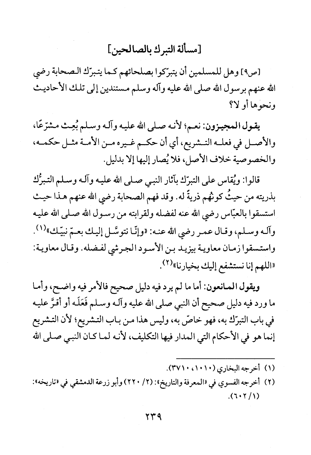 [ص ٩] وهل للمسلمين أن يتبرّكوا بصلحائهم كما يتبرّك الصحابة رضي الله عنهم برسول الله صلى الله عليه وآله وسلم مستندين إلى تلك الأحاديث ونحوها أو لا؟