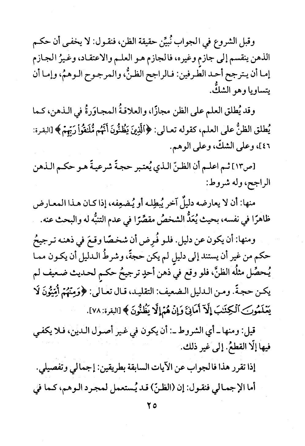 [ص ١٣] ثم اعلم أن الظنّ الذي يُعتبر حجةً شرعيةً هو حكم الذهن الراجح، وله شروط: