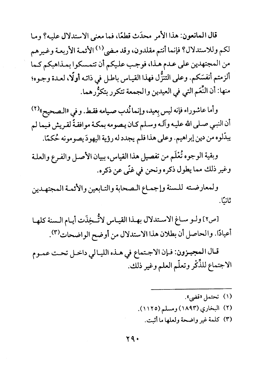 [ص ٢] ولو ساغ الاستدلال بهذا القياس لاتُّخِذَت أيام السنة كلها أعيادًا. والحاصل أن بطلان هذا الاستدلال من أوضح الواضحات (¬٣).