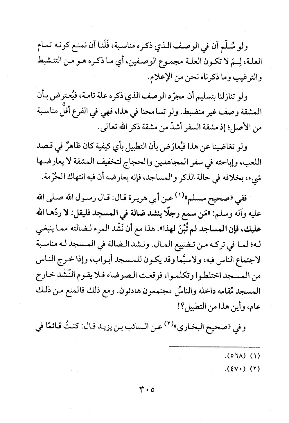 ففي «صحيح مسلم» (¬١) عن أبي هريرة قال: قال رسول الله صلى الله عليه وآله وسلم: «مَن سمع رجلًا ينشد ضالة في المسجد فليقل: لا ردّها الله عليك، فإن المساجد لم تُبْنَ لهذا». هذا مع أن نَشْد المرء لضالته مما ينبغي له؛ لما في تركه من تضييع المال. ونشد الضالة في المسجد له مناسبة لاجتماع الناس فيه، ولاسيَّما وقد يكون للمسجد أبواب، وإذا خرج الناس من المسجد اختلطوا وتكلموا، فوقعت الضوضاء فلا يقوم النّشْد خارج المسجد مُقامه داخله والناسُ مجتمعون هادئون. ومع ذلك فالمنع من ذلك عام، وأين هذا من التطبيل؟ !