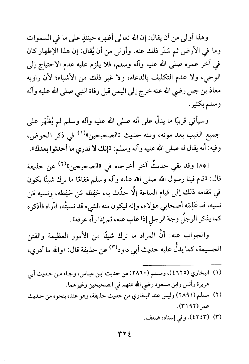 وهذا أولى من أن يقال: إن الله تعالى أظهره حينئذٍ على ما في السموات وما في الأرض ثم سَتَر ذلك عنه. وأولى من أن يُقال: إن هذا الإظهار كان في آخر عمره صلى الله عليه وآله وسلم، فلا يلزم عليه عدم الاحتياج إلى الوحي، ولا عدم التكليف بالدعاء، ولا غير ذلك من الأشياء؛ لأن راويه معاذ بن جبل رضي الله عنه خرج إلى اليمن قبل وفاة النبي صلى الله عليه وآله وسلم بكثير.