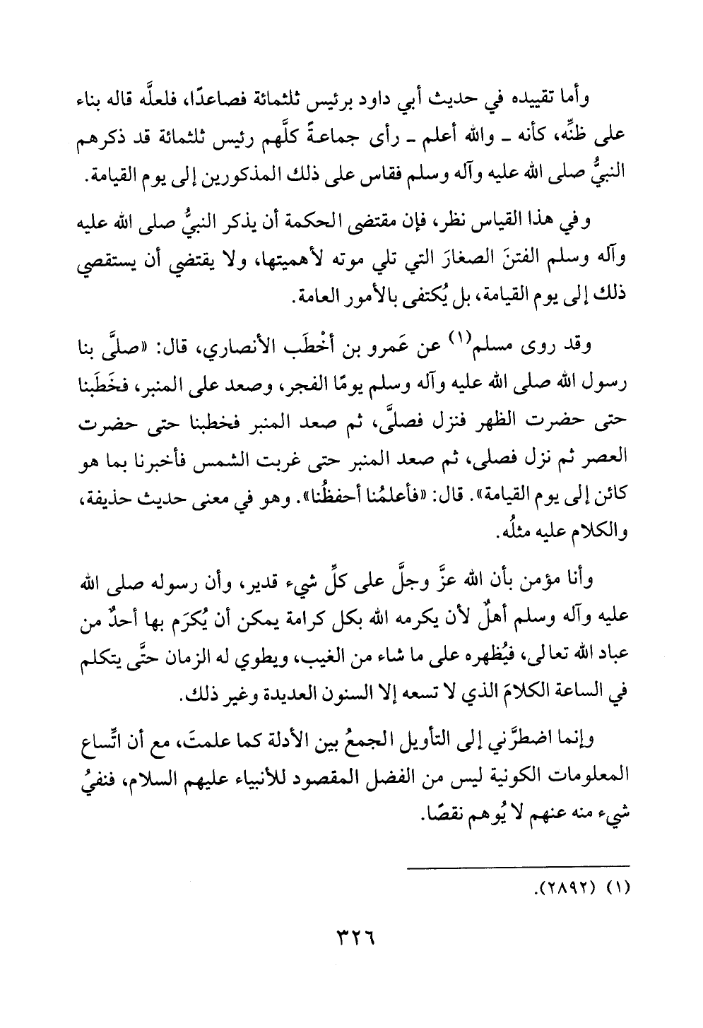 وإنما اضطرَّني إلى التأويل الجمعُ بين الأدلة كما علمتَ، مع أن اتِّساع المعلومات الكونية ليس من الفضل المقصود للأنبياء عليهم السلام، فنفيُ شيء منه عنهم لا يُوهم نقصًا.