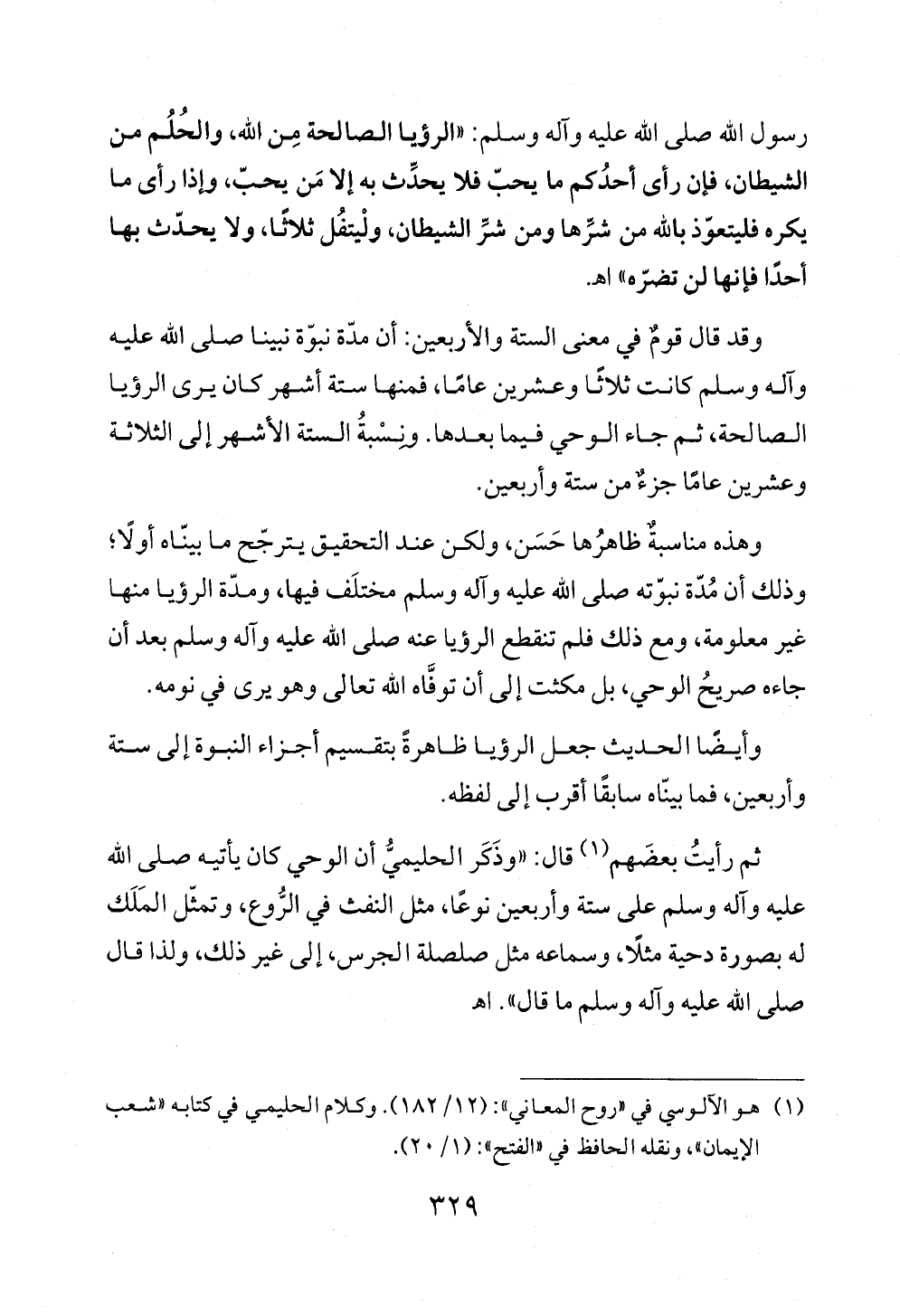 وأيضًا الحديث جعل الرؤيا ظاهرةً بتقسيم أجزاء النبوة إلى ستة وأربعين، فما بينّاه سابقًا أقرب إلى لفظه.