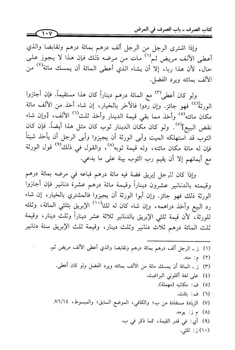 (¬1) ز - الرجل ألف درهم بمائة درهم وتقابضا والذي أعطى الألف مريض ثم.